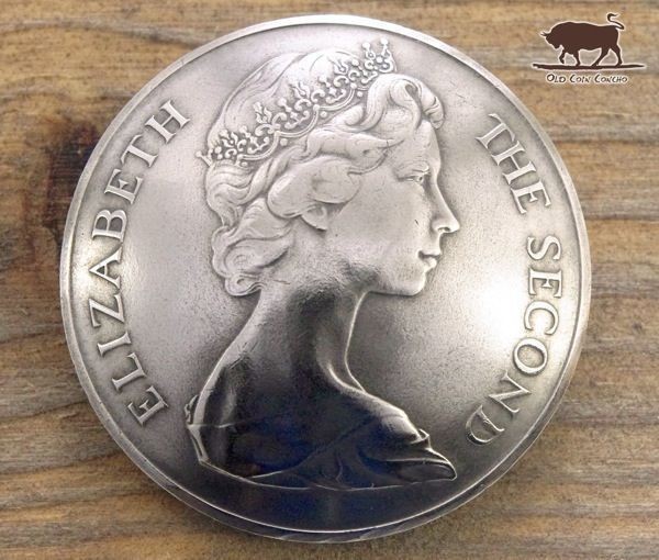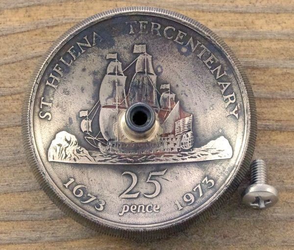 △大型 コンチョ ネジ式 セントヘレナ島 25ペンス エリザベス 38mm