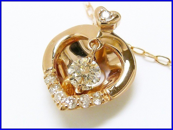 ペンダント本体は、ダイヤモンドを小さな2本の爪でセットし、パーツの中で「ユラユラ」と揺れるようにジョイントした、可愛らしいデザインです。