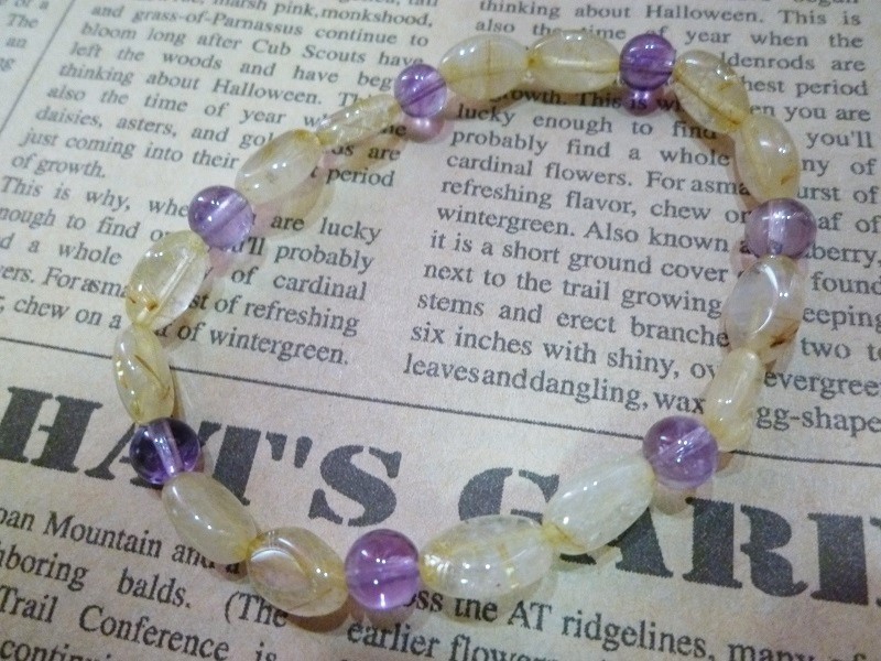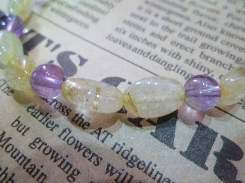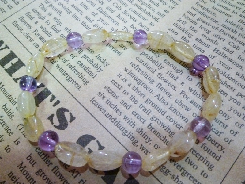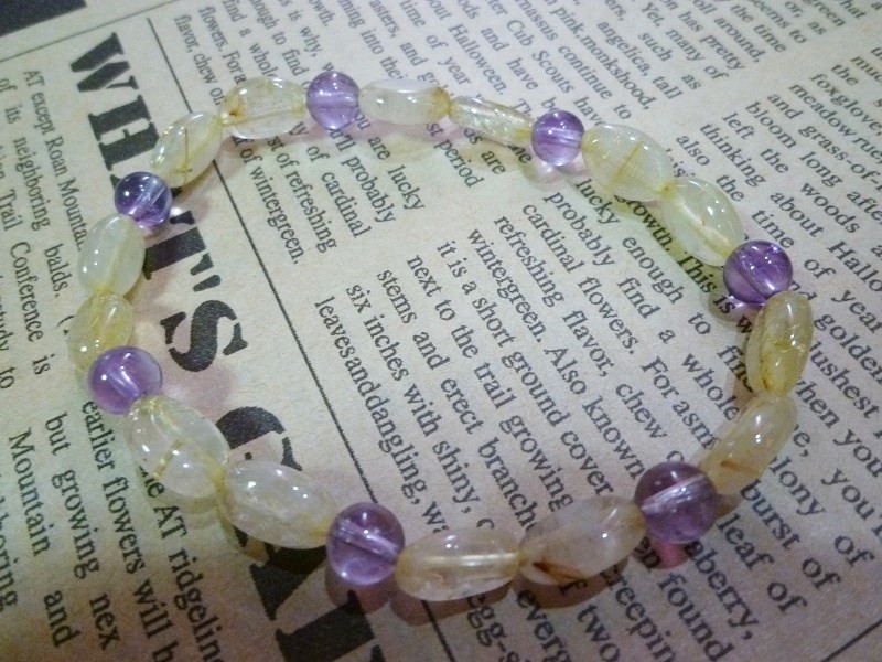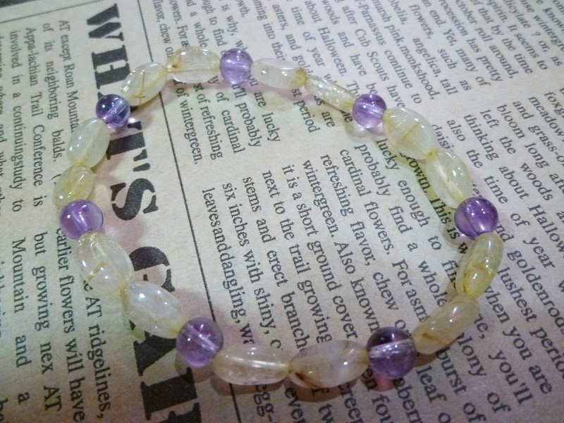 ☆ゴールドルチルクォーツ平型、アメジストの 高品質のブレスレット商品です。