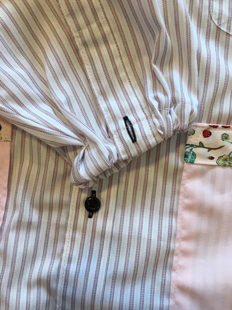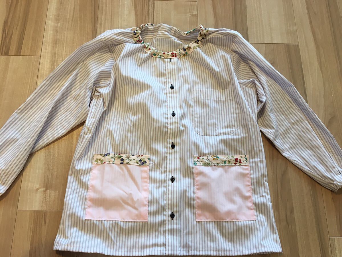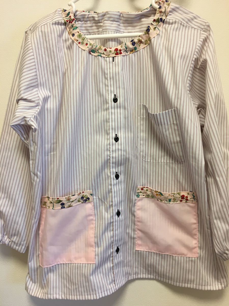 中古の男性用のワイシャツをリメイクしてスモックを作りました。