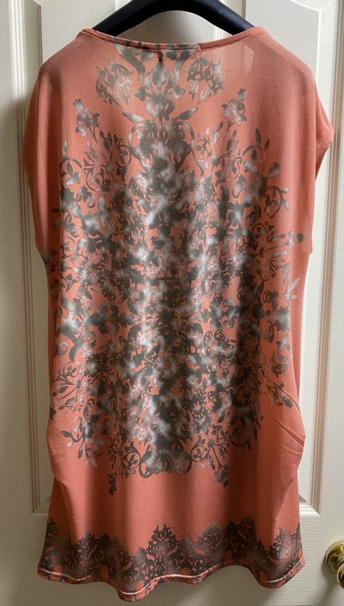 サーモンピンクのロング丈チュニック