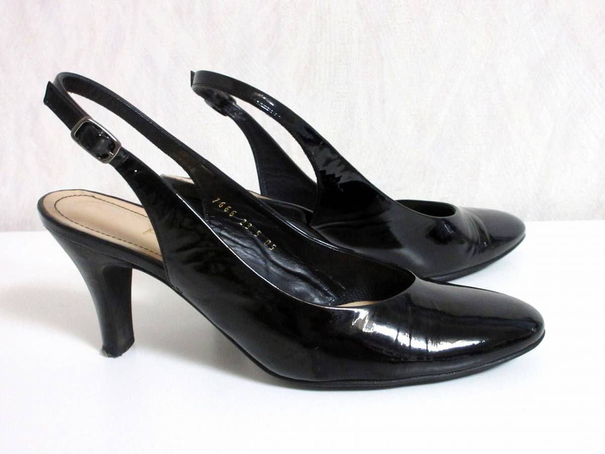 フレスカ FRESCA エナメル レザー パンプス 黒 ブラック 23.5 北2965