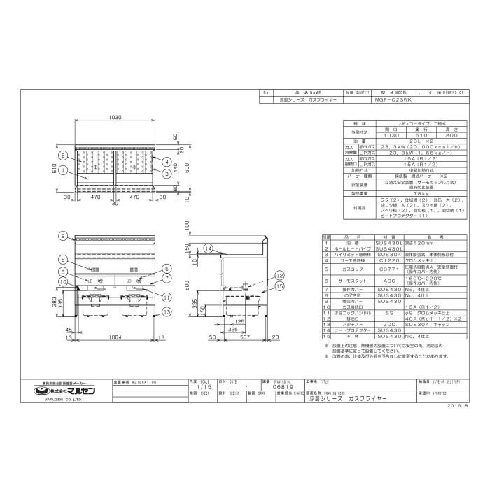 送料 送料無料。沖縄、北海道、離島などは別途見積いたします。※上記価格には、搬入費、設置費等は含まれておりません。ご希望の際はお見積りいたします。お問い合わせください。※製品の仕様は品質向上のため予告なしに変更する場合があります。外形寸法(mm) 1030×600×800×(バック高)150油量 23リットル×2ガス接続 都市ガス:15A■配送・荷下ろしについて・こちらの商品は時間指定配達はできません。日にち指定は可能です。・商品の受け渡しはトラック上です。ドライバーは荷下ろしや入口、店内までの搬入作業は行いません。・必ず、商品受取人のお手配をお願いいたします。トラック上から荷下ろしできる方が必要です。・店内や入口までの搬入作業が必要な場合は、別途搬入費用が掛かります。