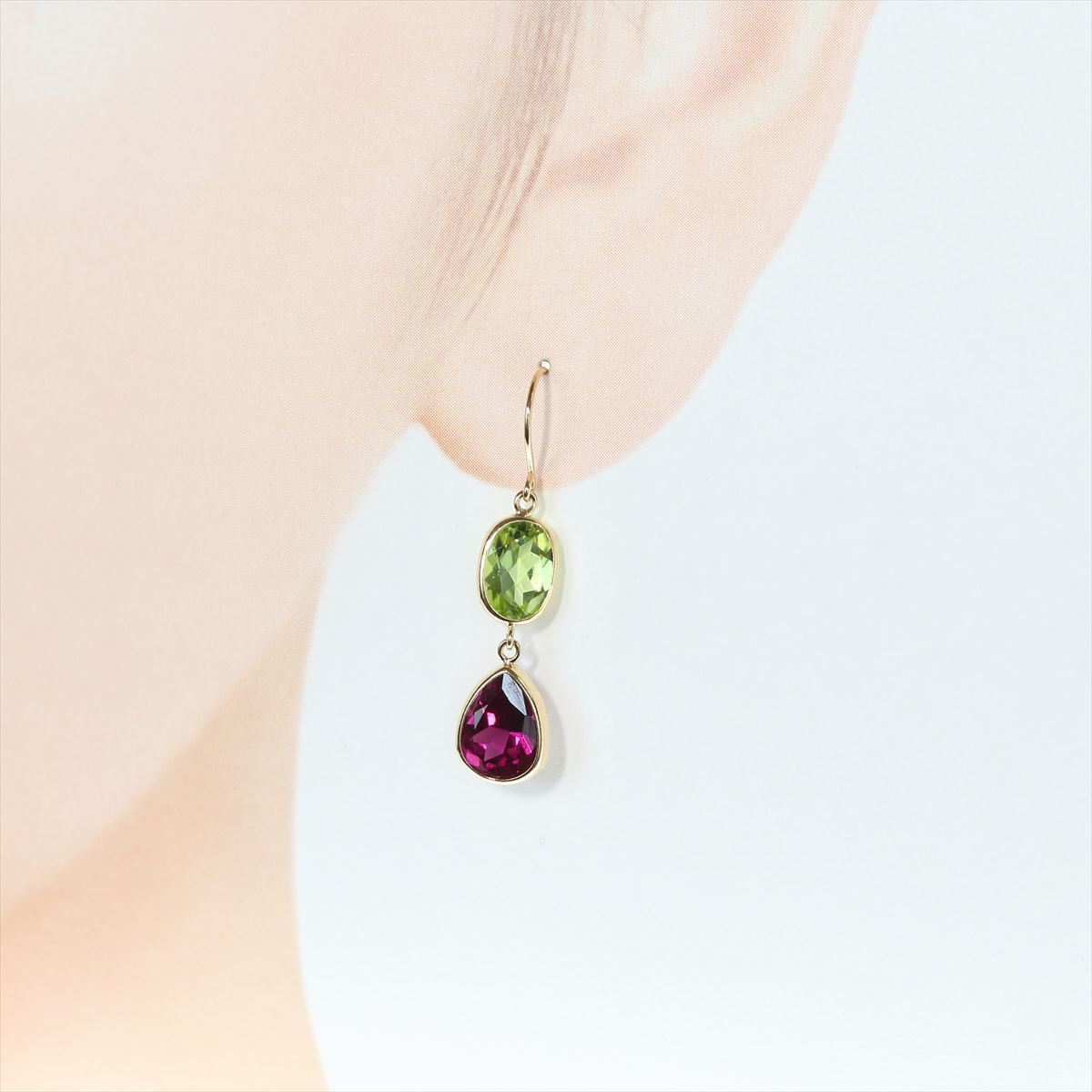 ロードライトガーネットとペリドットの可愛いピアスです!