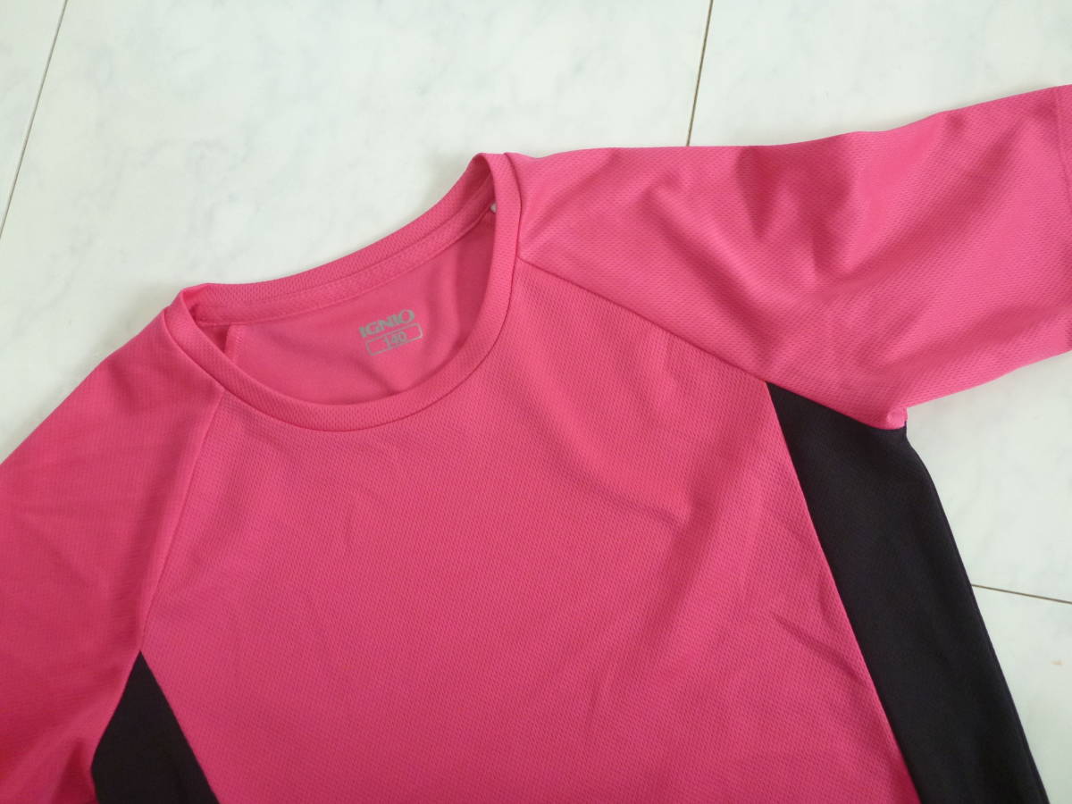 美品 IGNIO ★黒×ピンク さらっと生地 半袖Tシャツ 140