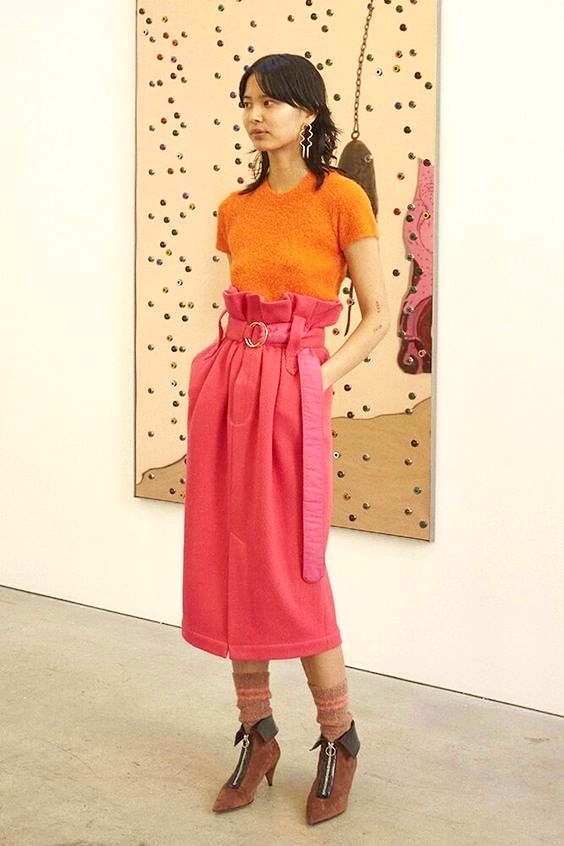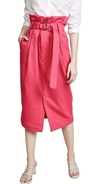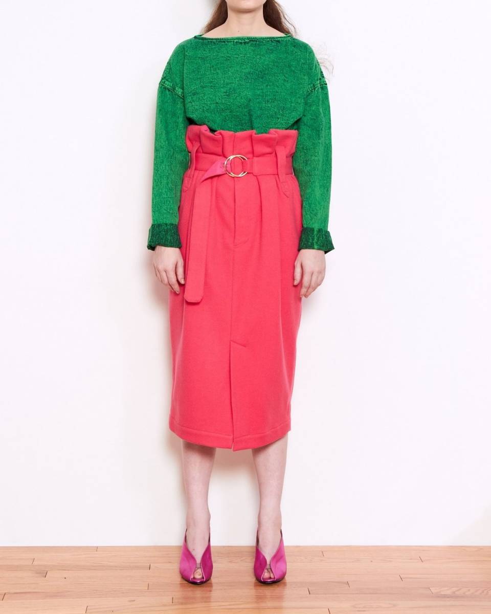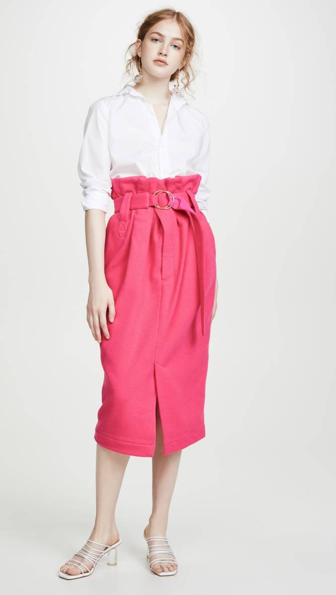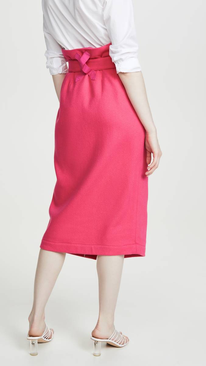 ベルト付きのハイウエストスカート。足さばきの良い前スリット入り。クラシカルかつ女性らしい印象でインスタイルがおすすめです。