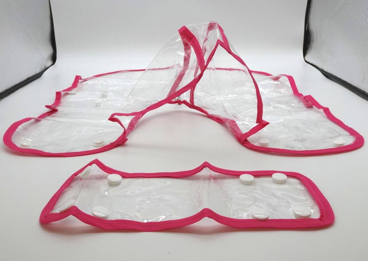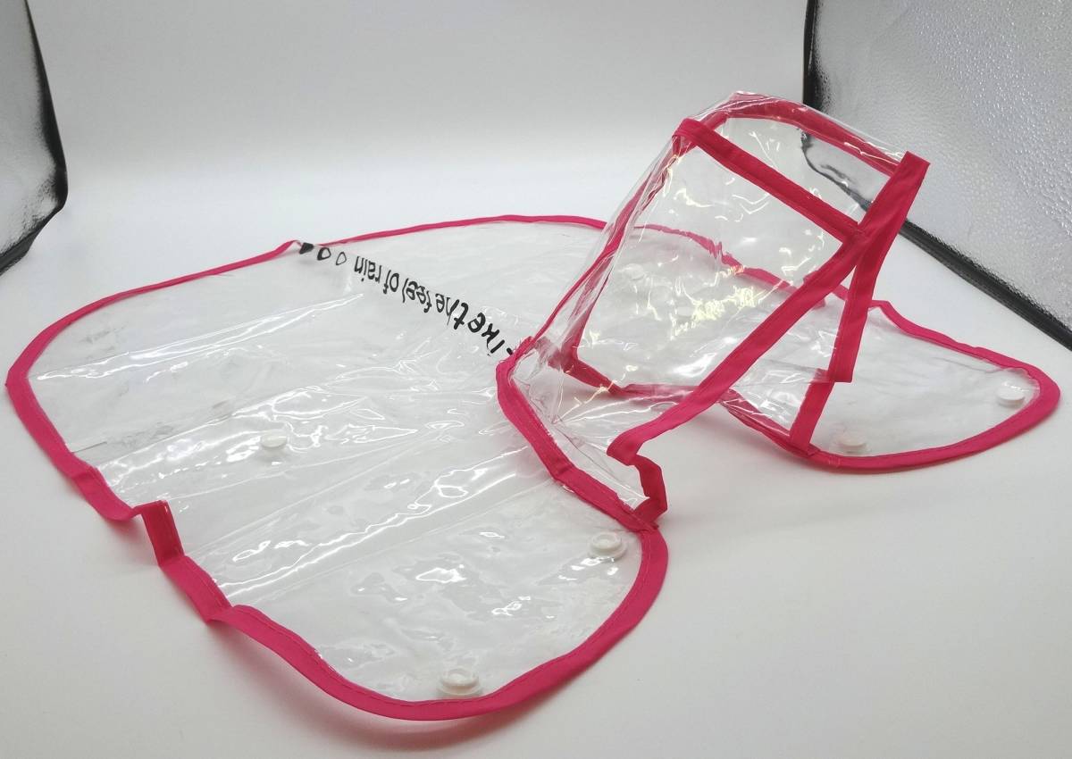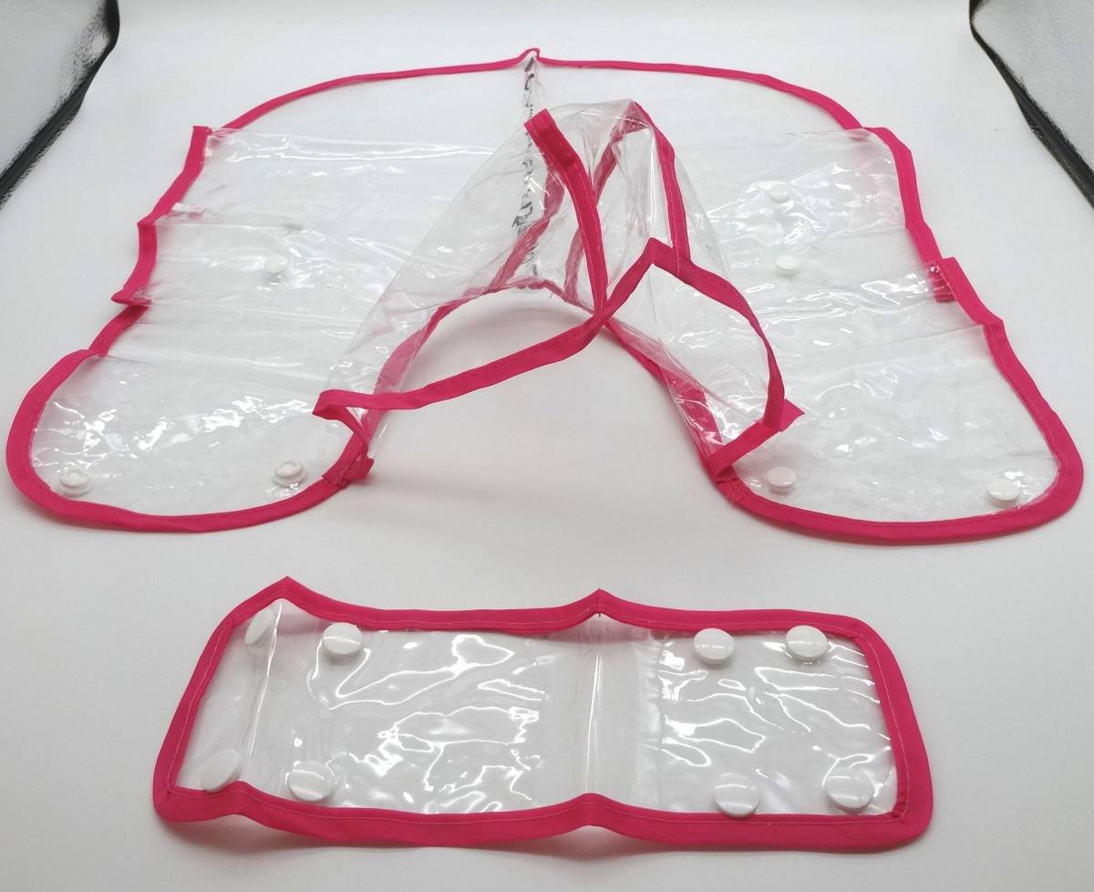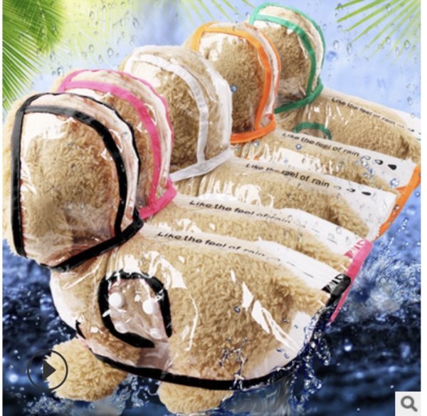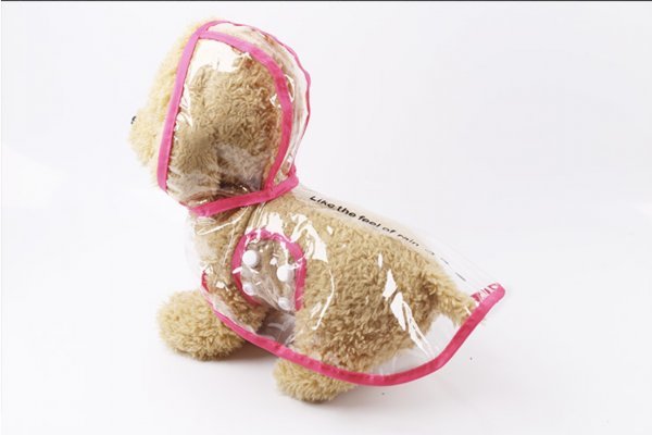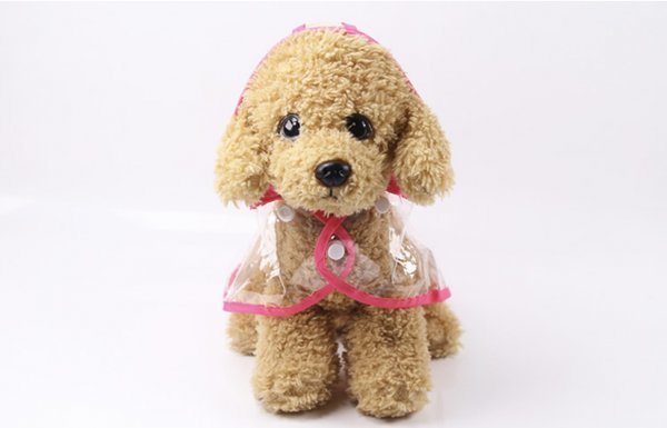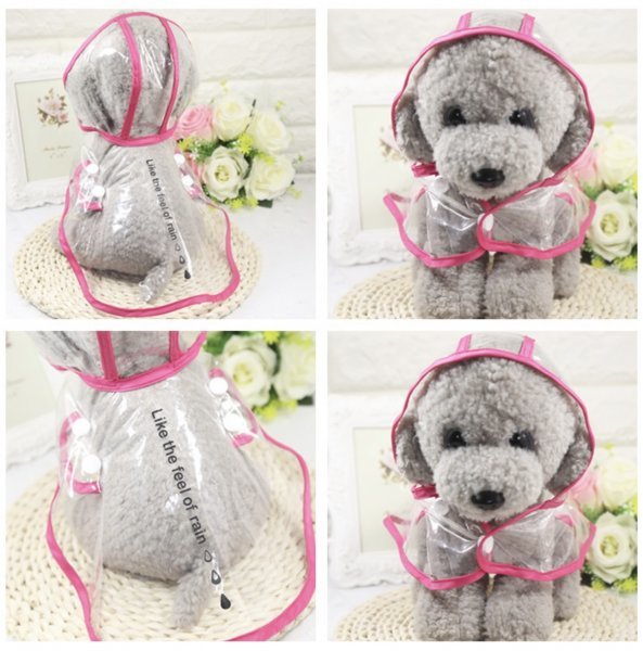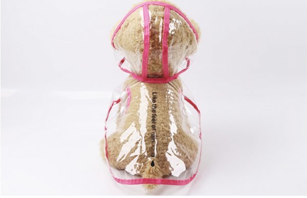 雨の日に便利なワンちゃんかっぱです。装着が簡単で風雨からワンちゃんを守ります。