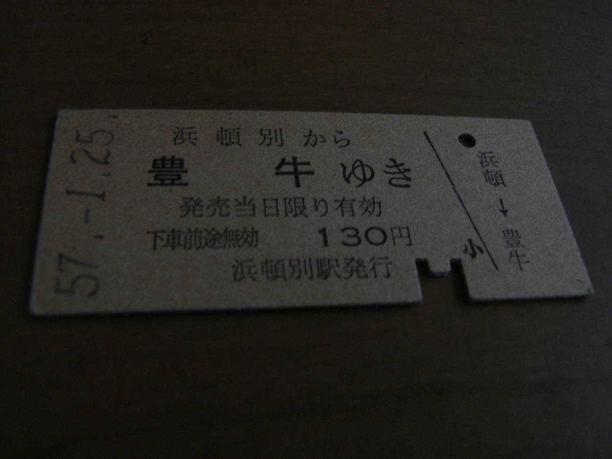 天北線・興浜北線 浜頓別から豊牛ゆき 130円 昭和57年1月25日 浜頓別駅発行
