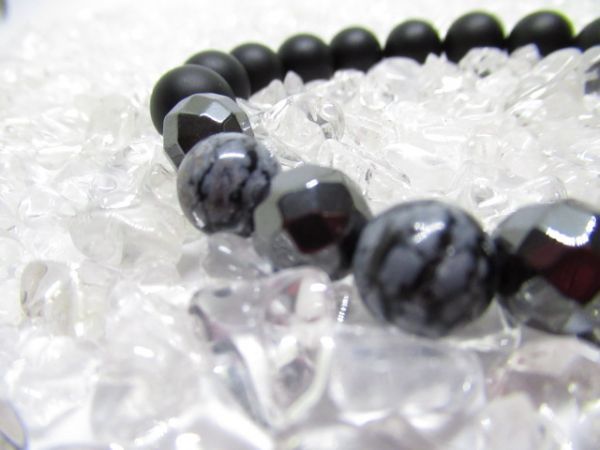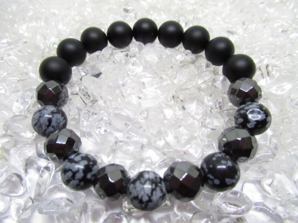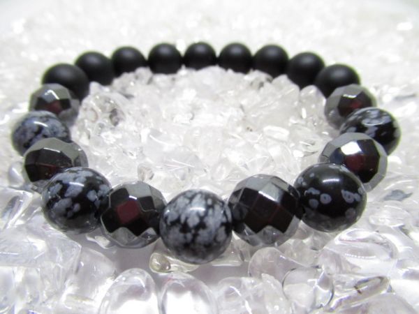 【フロストオニキス×オブシディアン】天然石ブレスレットパワーストーン