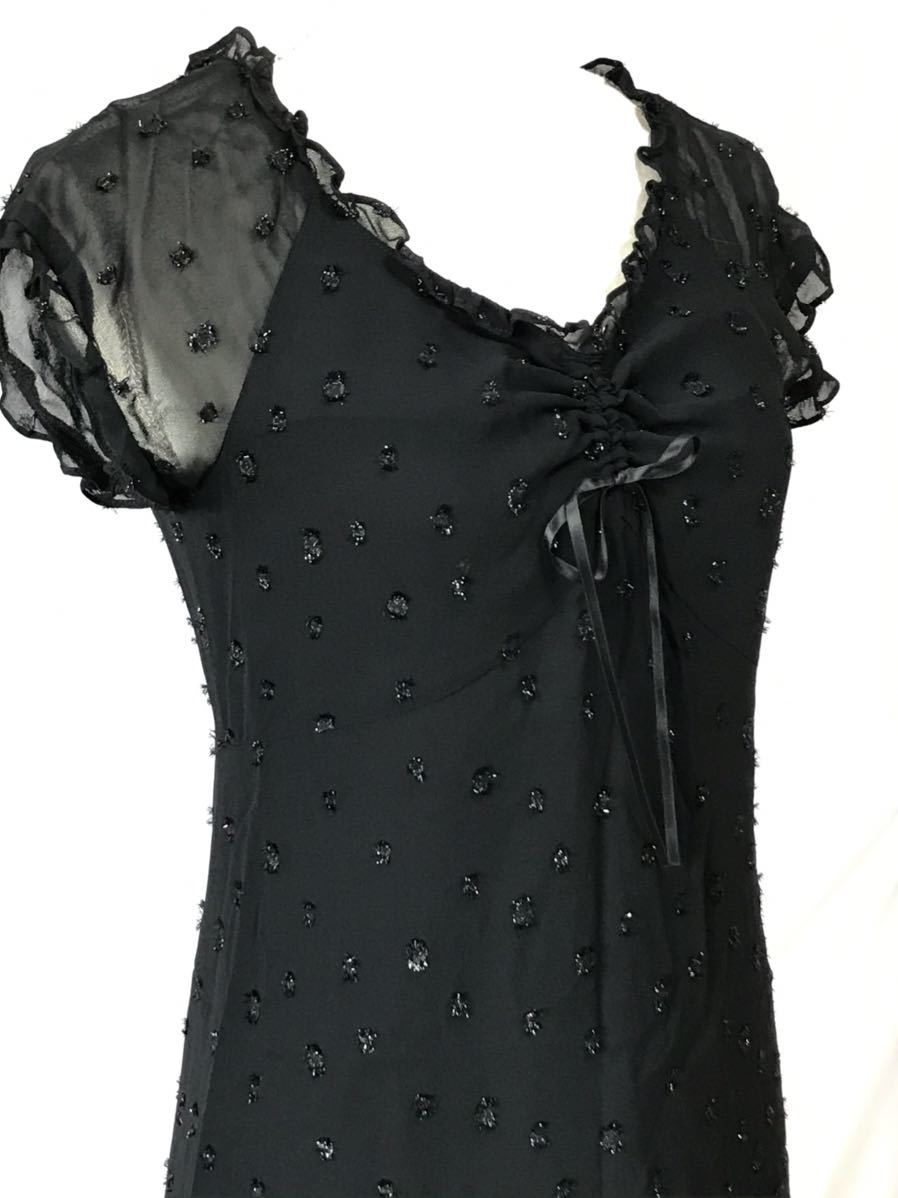 IENAの美品フリルリボン付きラメデザインフェミニンワンピースになります。