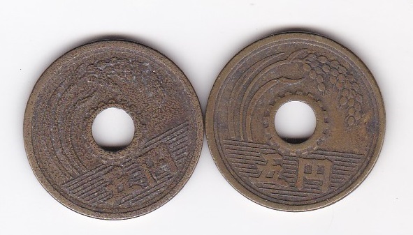 ◇5円黄銅貨 明朝 昭和26年 2枚★