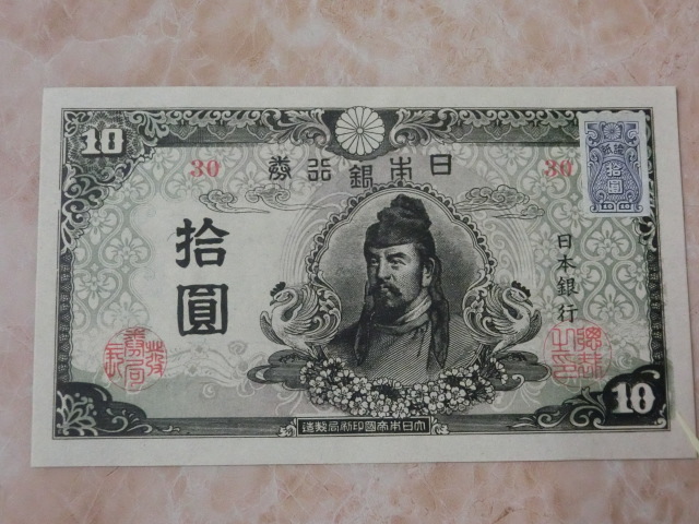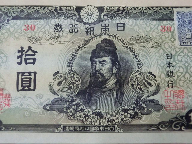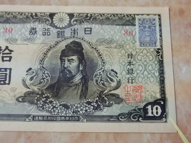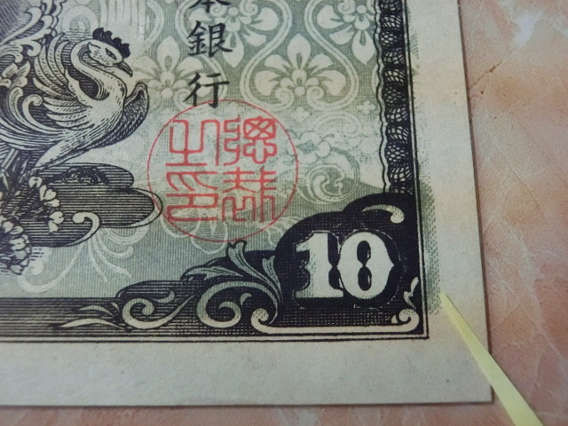 エラー品 ★ 再改正不換紙幣10円 4次10円 証紙付 未使用~準未使用★ No.5