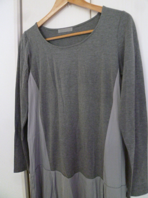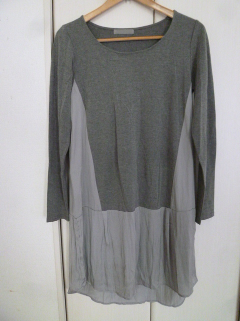 Alcali/アルカリ○グレーサイドサテン調異素材デザインワンピース/メルローズ長袖チュニック○OP1118