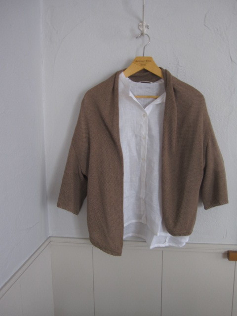 七分袖なので重ね着でどうぞ。前はもたつかずオシャレな斜めのラインなのでゆらゆら揺れるような着方でも、ピン・ブローチで留めての着こなしも・・・。