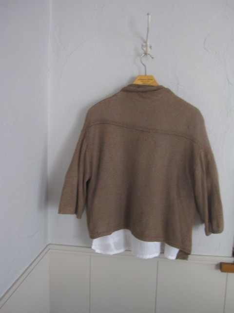 サイズ・・・着丈42cm、肩幅53cm、袖丈30cm。肩幅かゆったりとってあり、肩のラインを落として着るようなデザインですので参考までのサイズです。。