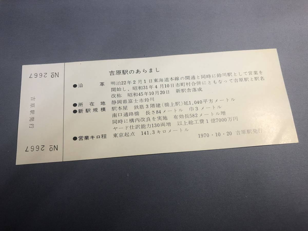 吉原駅駅舎改築記念入場券 昭和45年 【K3-33】