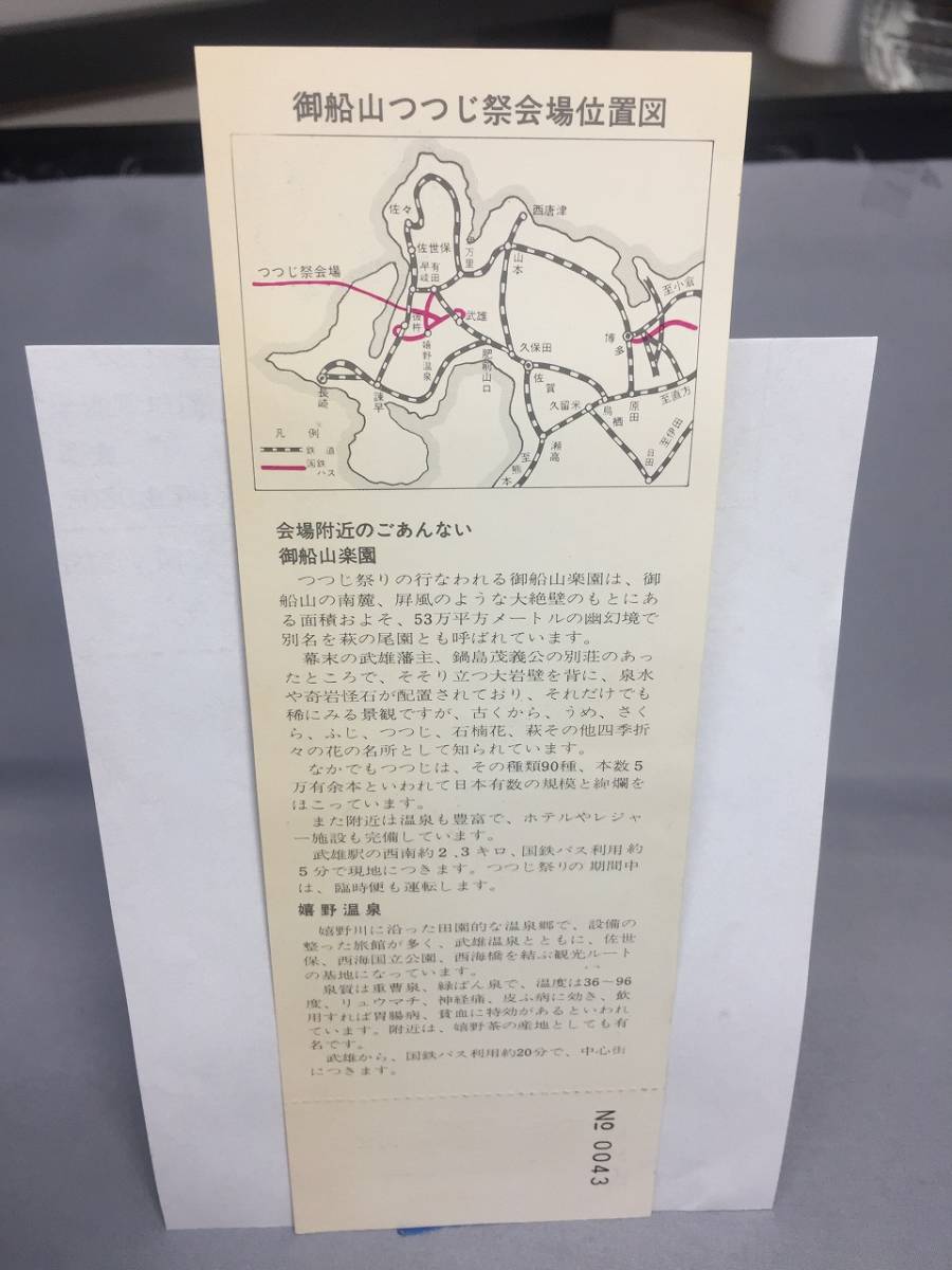 御船山つつじ祭 記念乗車券 昭和48年 嬉野温泉駅発行 【K7-37】