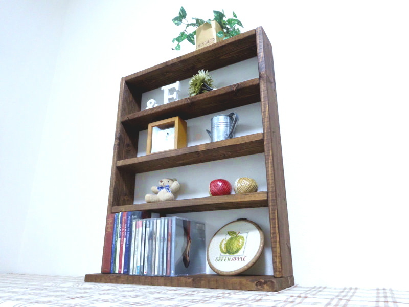 アンティーク風飾り棚 据え置き縦長サイズです。 こちらのタイプは据え置き型なので壁際に置くだけで使用できます。 サイズ、詳細 幅48.5cm×高さ62cm×奥行き9cm(最下層のみ14cm) CDを置いている一番下の段の高さが14cm、上の三段が12.5cmとなります ※ネジ類は埋め込み加工し、見えなく仕上げております。 同梱発送について。 ・他に出品されているセット商品との同梱発送や取り置きにも対応致します。 同梱発送の場合は、下記の送料表より+400円となります。 ※こちらの商品は「かんたん取引」で出品しておりますので、 複数個ご落札頂いた際は、同梱送料をお知らせいたします。 ※商品ラインナップは随時変更しておりますので 在庫が無くなり次第、再出品を行わない場合があります。 7セット以上の同梱発送をご希望の個人、業者の皆様へ。 まとまった数の商品をご希望の方は、 質問欄からその旨をお知らせ頂ければご案内させて頂きます。 | ||||