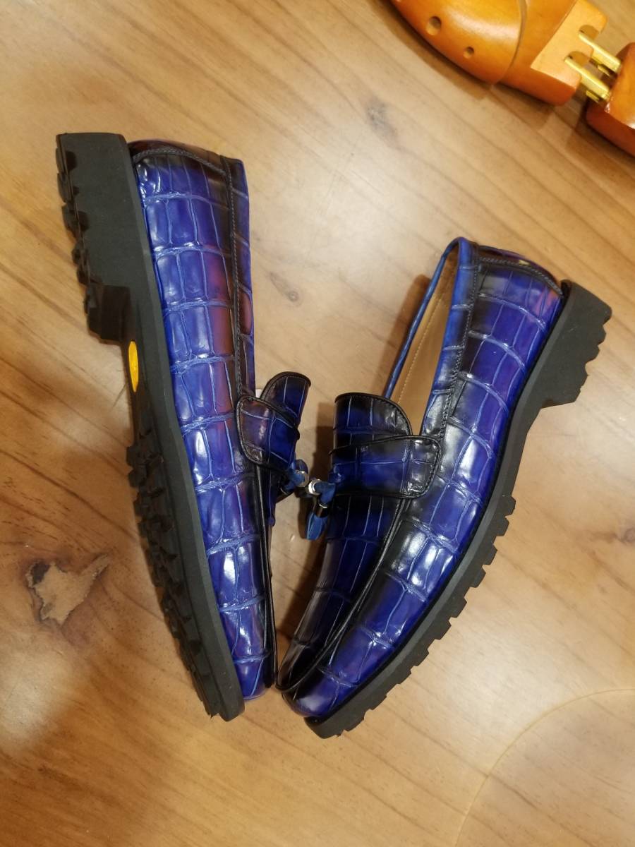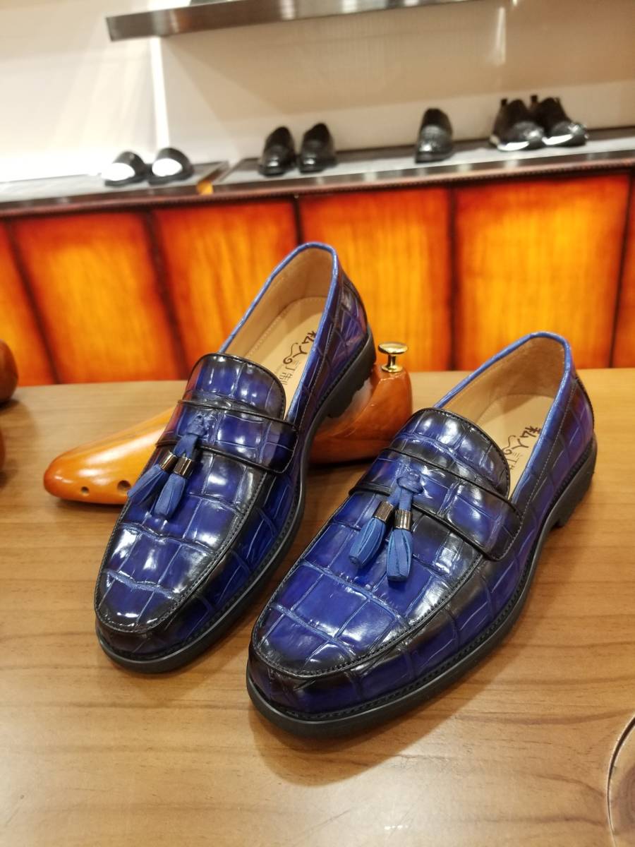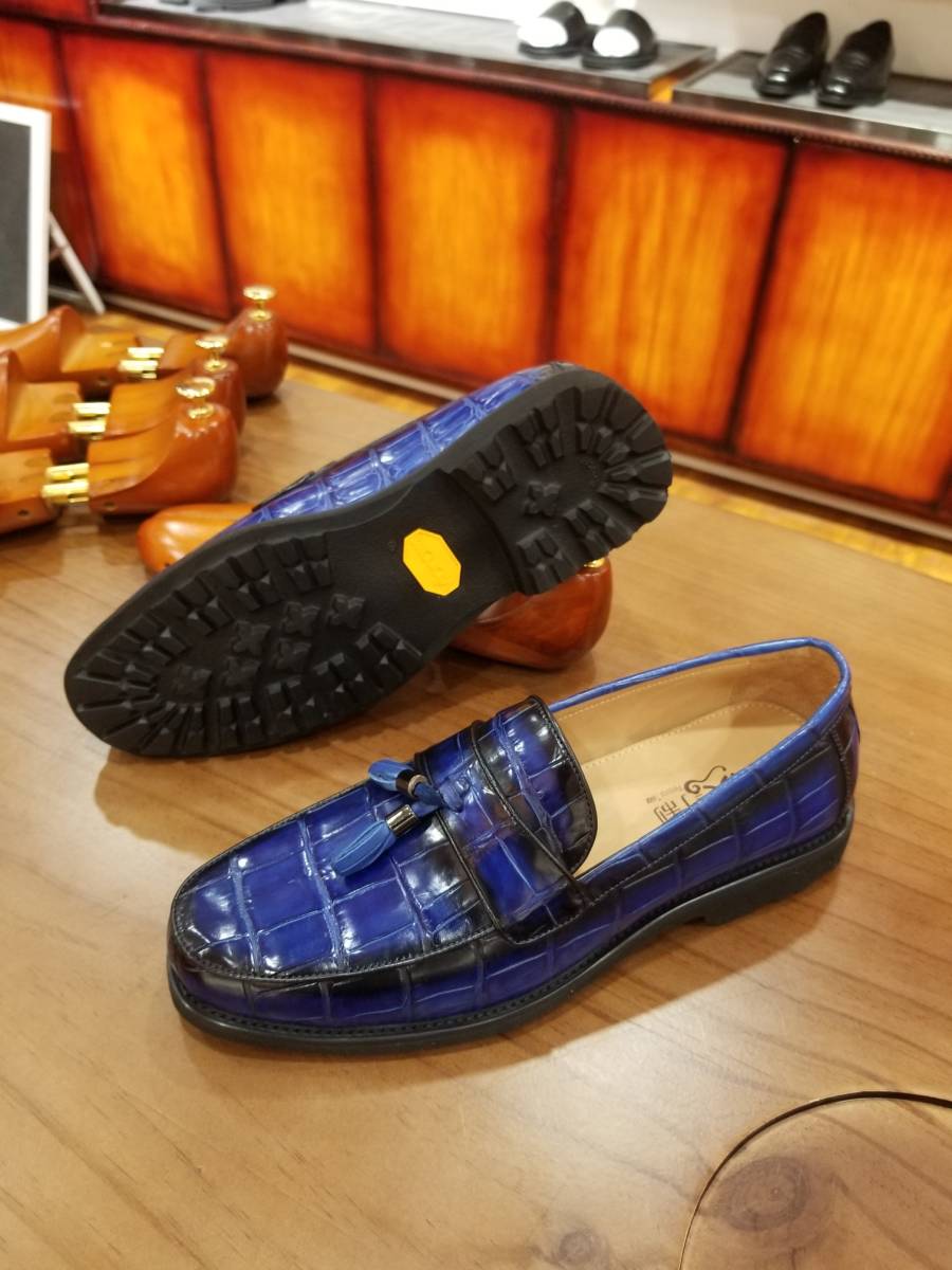 本物のワニ革を使用し、使い込むことにより味が増し、深みのある色に変化していくので光沢の変化も楽しめます。