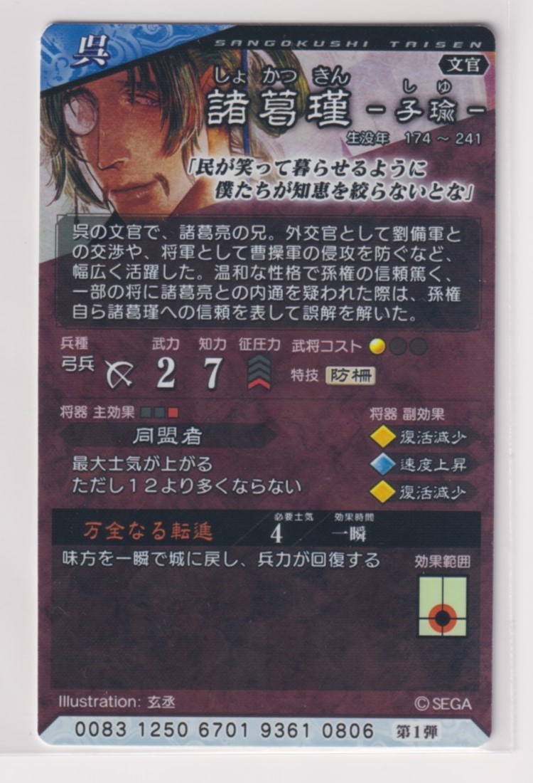 三国志大戦4 呉 1弾 R 諸葛瑾 万全なる転進 同盟者 コレクション用