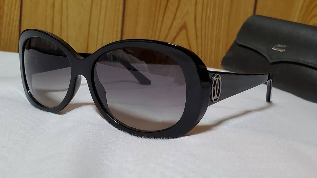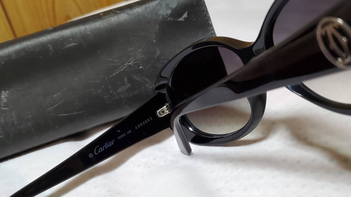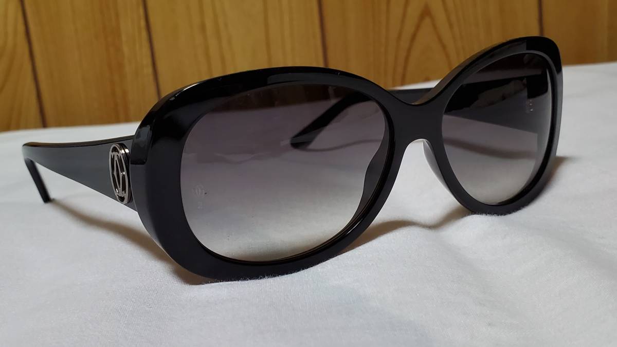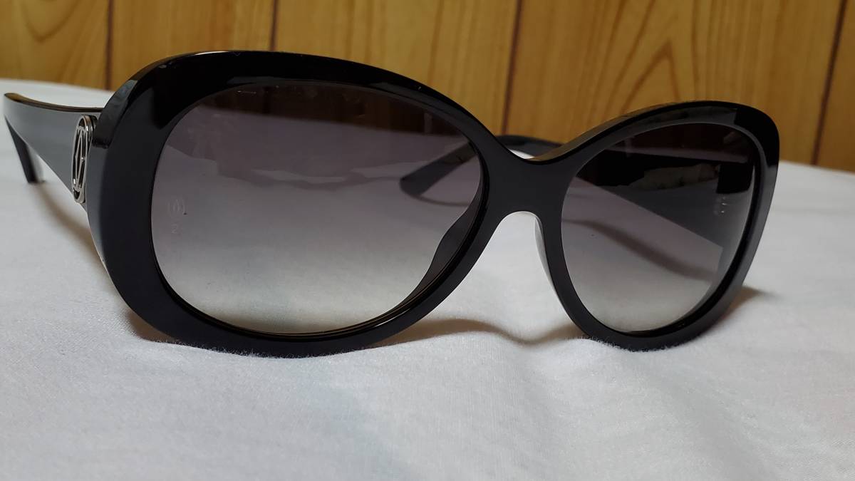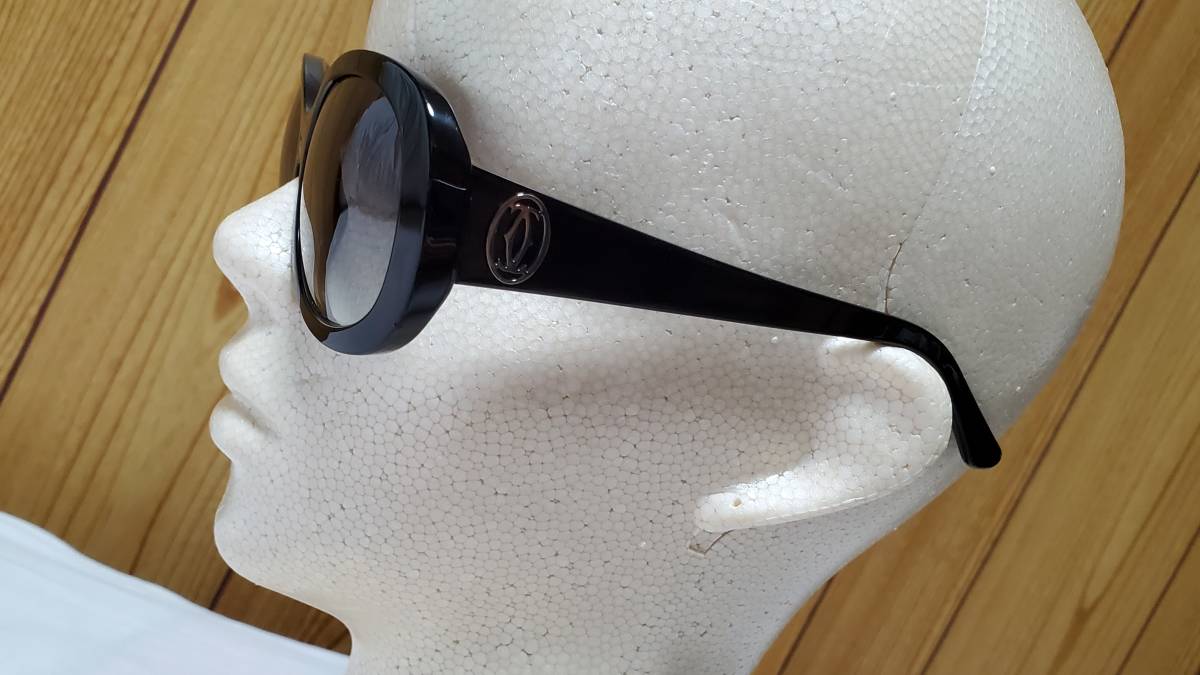正規 カルティエCartier クラシック 2Cロゴエンブレム サングラス黒 ラージCデコール プラチナフィニッシュシルバー×ブラック エレガント