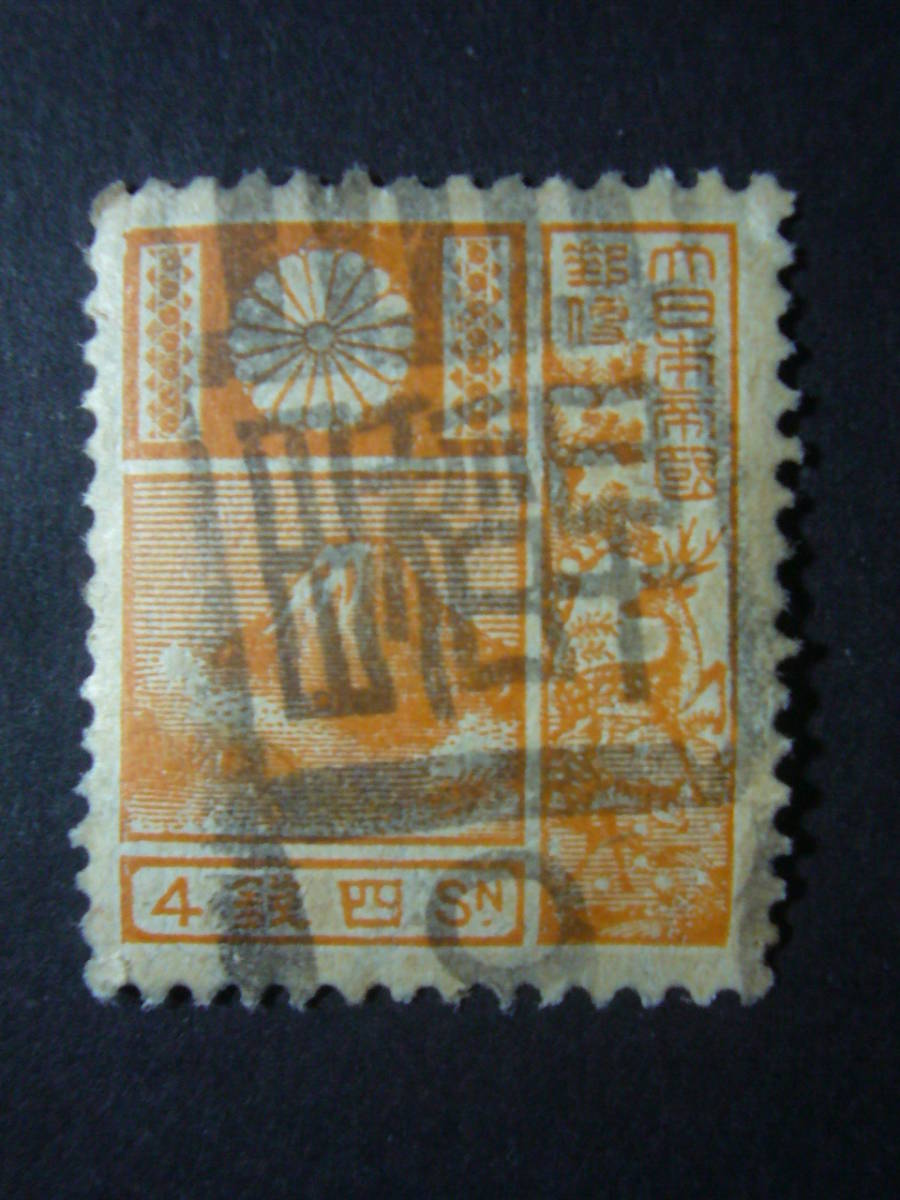 ★日本切手・使用済★B60 富士鹿 新版改色 4銭 ローラー印 早稲田 9年