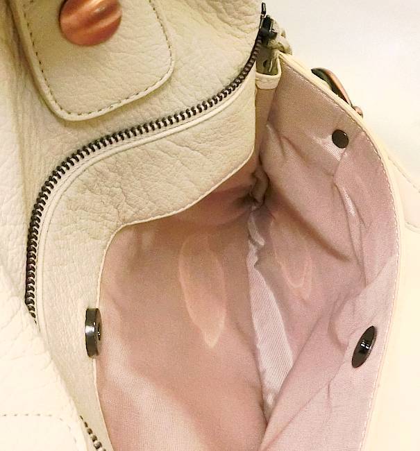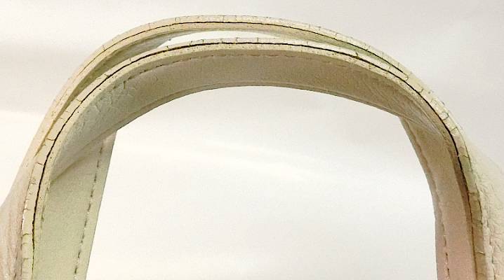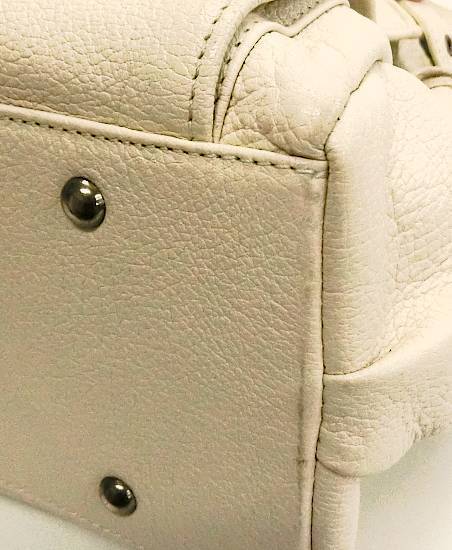 ■商品の状態:背面下部に小さな擦れが一か所あります。底の縁や角に少々擦れ、黒ずみがあります。持ち手の縁に表面のひび割れがあります。前面外ポケットの中に目立つ大きなシミがあります。内側ファスナーポケット側の上部に小さな汚れがあります。金具に擦れや小傷があります。ショルダーストラップの本来穴がない部分に一か所穴が開けてあります。