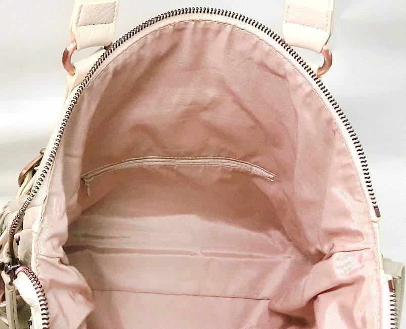 ■仕様:ファスナー開閉式、持ち手約40.5cm、ショルダーストラップ約116-125cm(穴5つ、長さ調節可能、取り外し可能)、内側ファスナー式ポケット×1、内側パッチポケット×2、外側マグネット式ポケット×1、底ビス×4