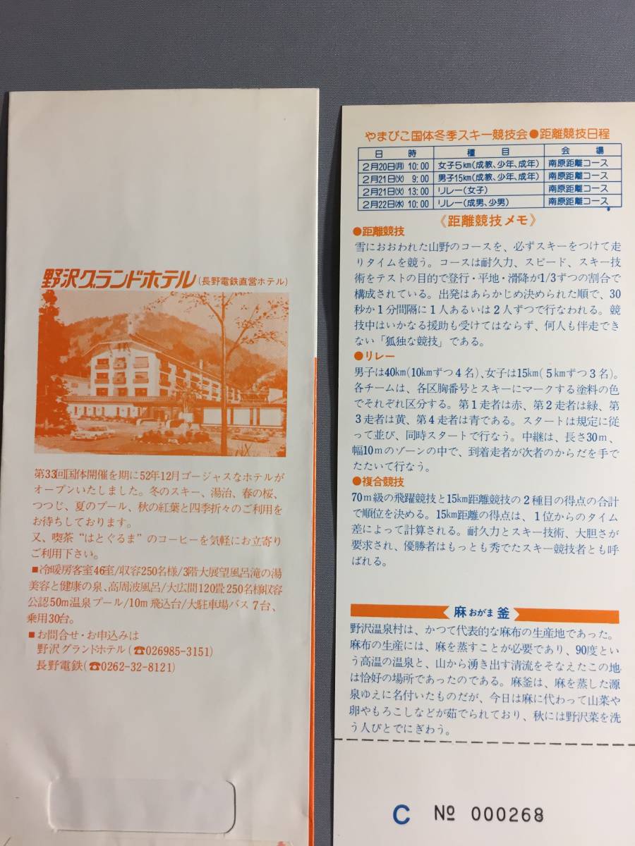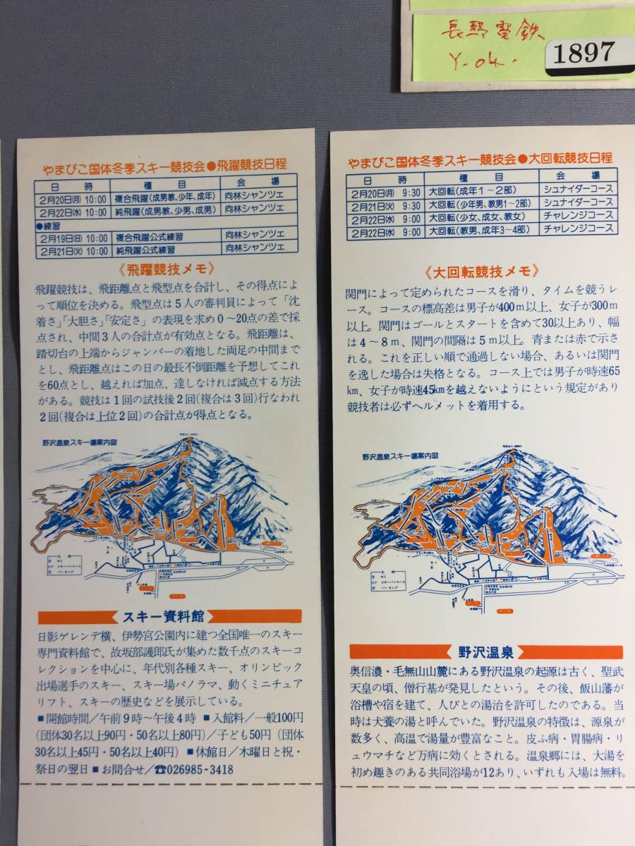 長野電鉄 53年やまびこ国体 信州野沢温泉 冬期スキー競技会記念乗車券 記念乗車券3枚 【Y04-1897】