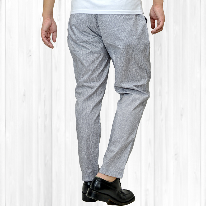 細かな杢調がこなれ感を演出する昇華転写プリントテーパードパンツ。