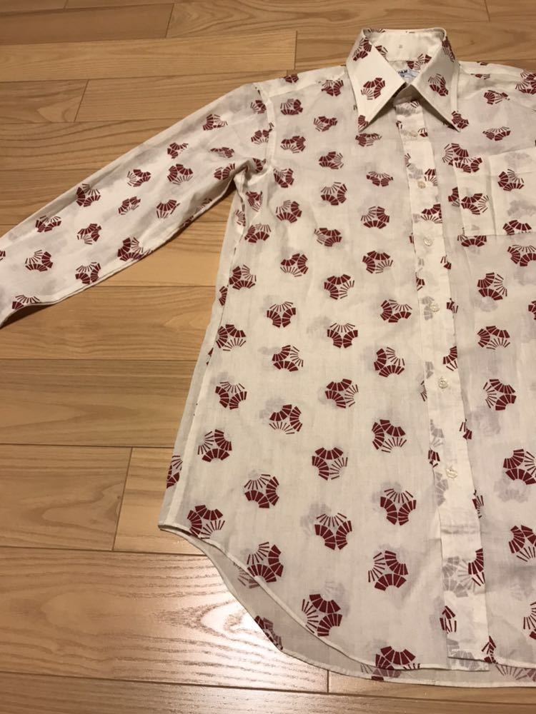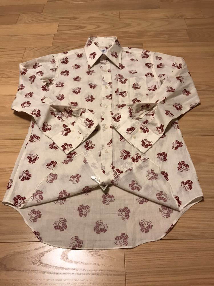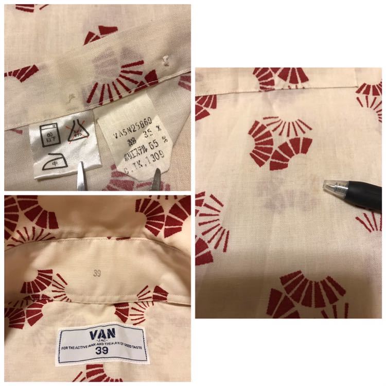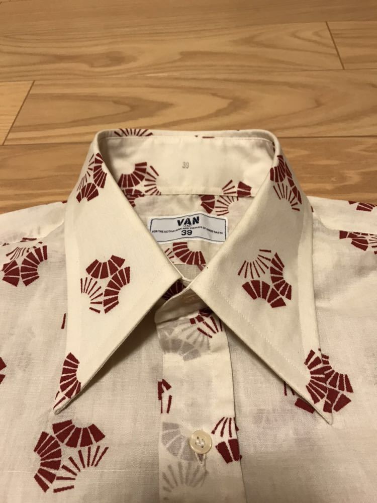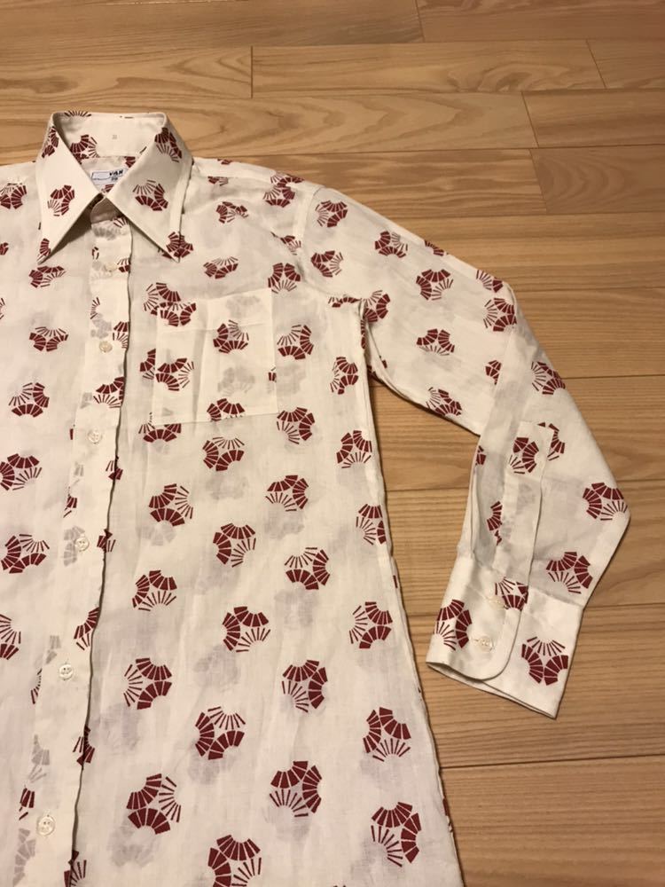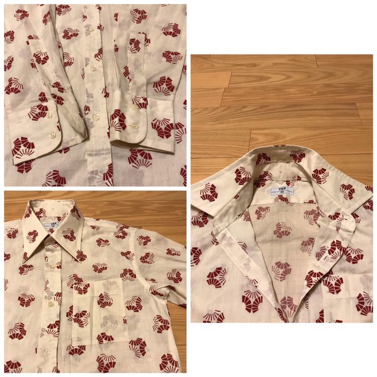 当時物.昭和☆美品 VAN JAC/バン.ヴァン サイズ39 M?相当 和調模様 総柄. 薄手長袖シャツ ワイドカラー&襟芯入り //アイビー みゆき族 IVY
