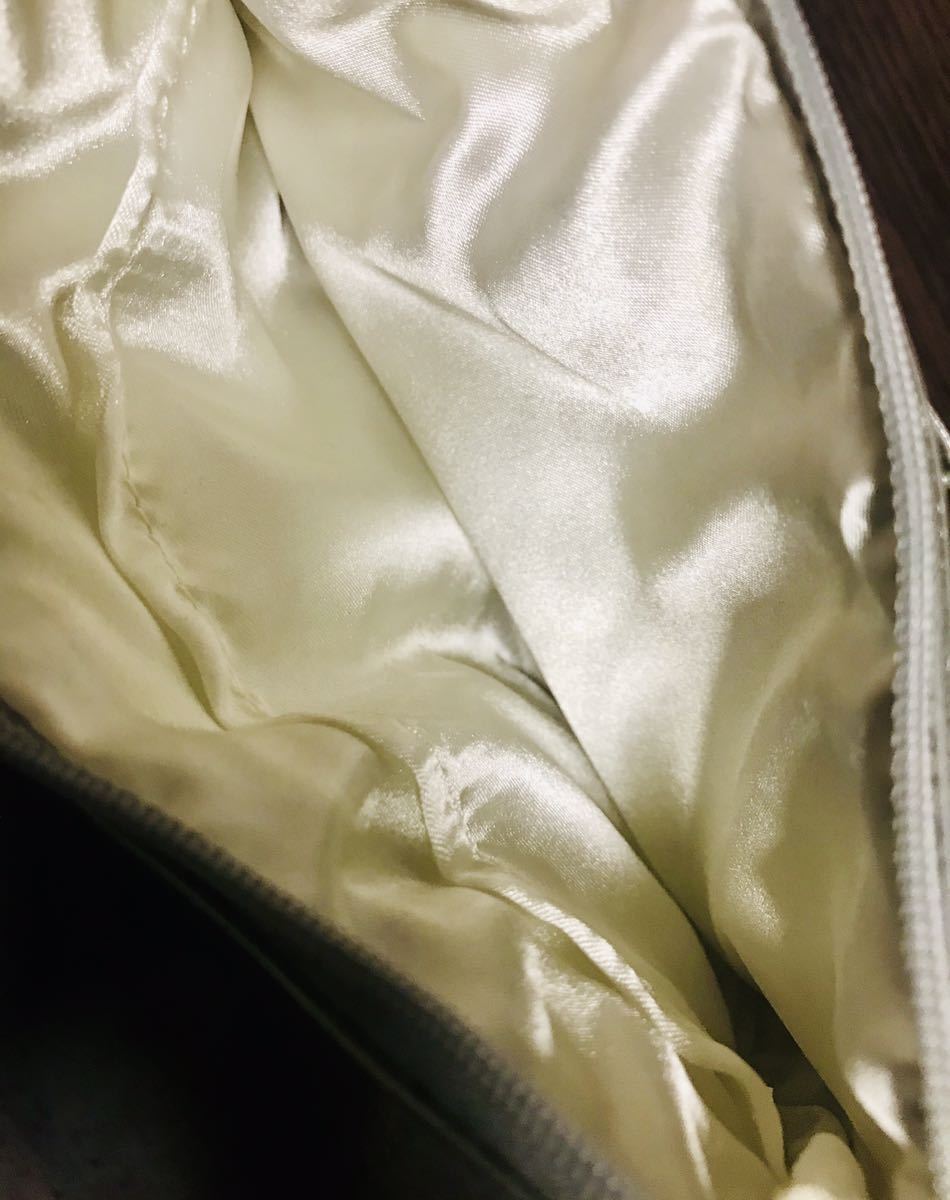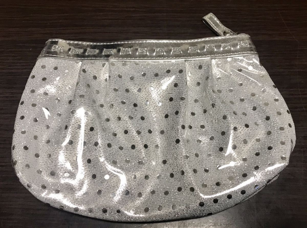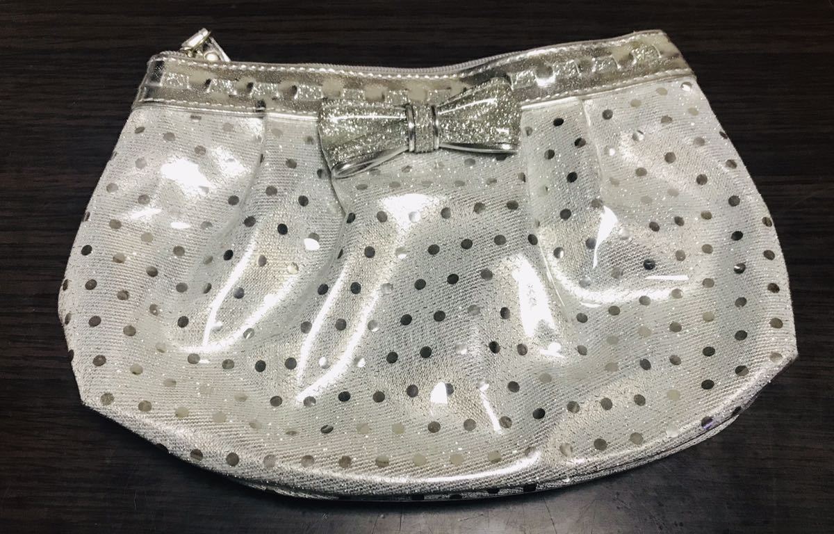【未使用】可愛いキラキラドット&リボンポーチ☆シルバー 小物入れ 化粧ポーチ 仕切り有 ツヤツヤ