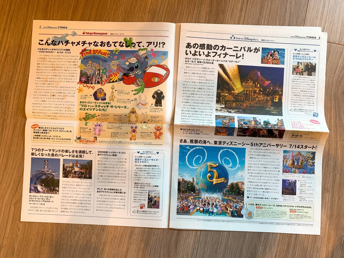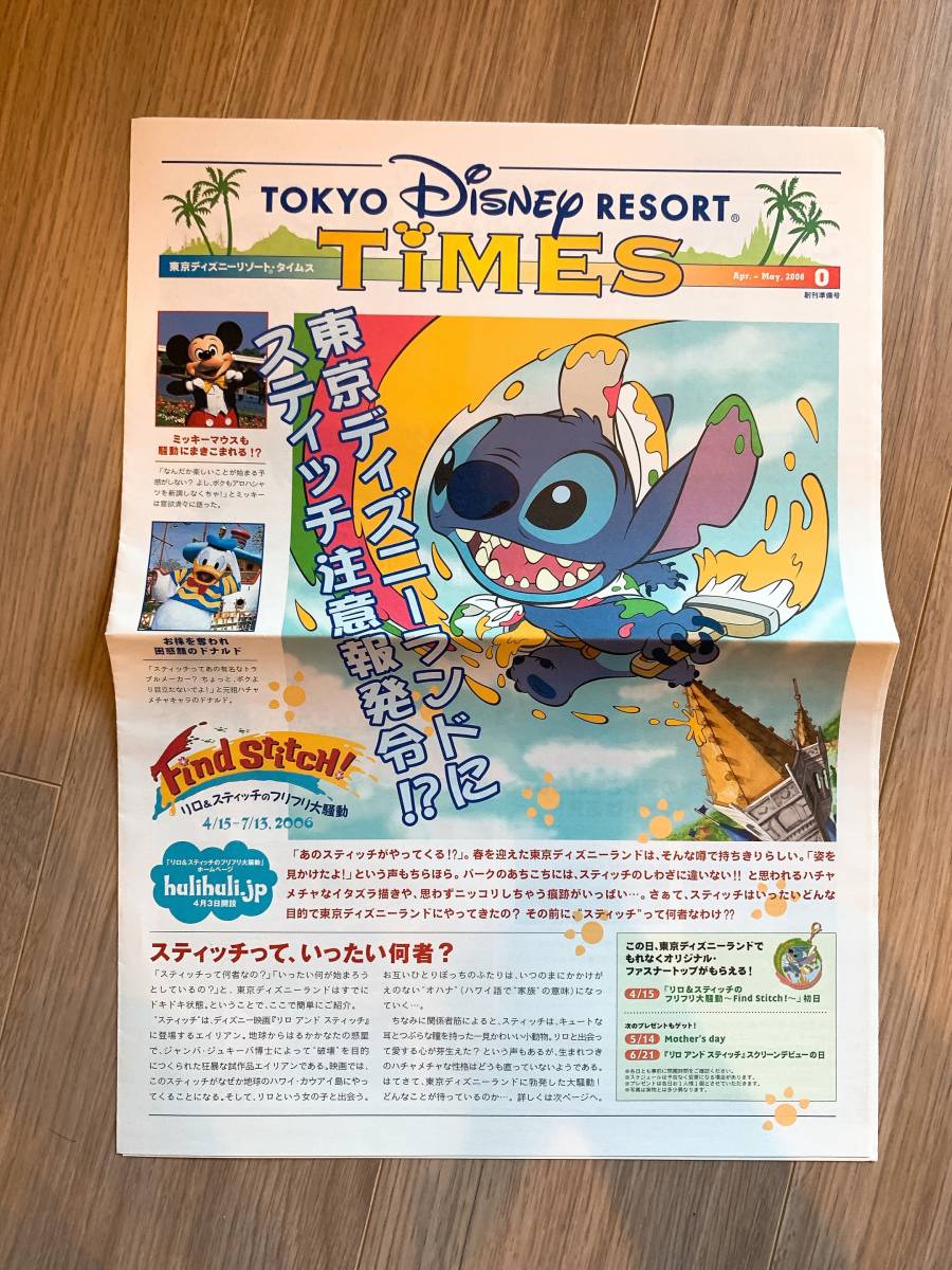「タイムス」第0号(創刊準備号)は、「リロ&スティッチのフリフリ大騒動」が特集されています。その後の号では、それぞれのパークで開催されたシーズナブルなイベントやアトラクションなどを特集しています。