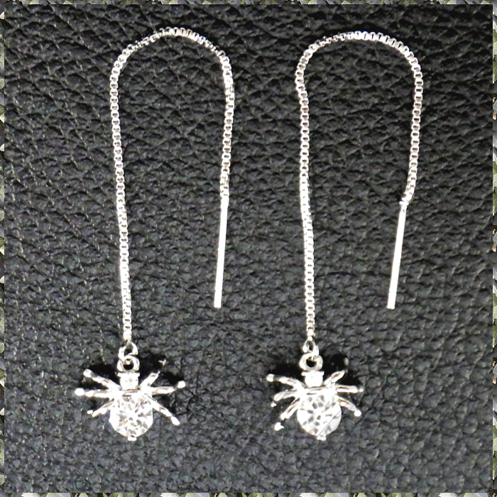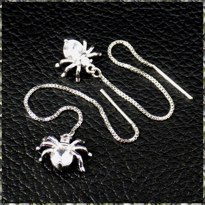 White Gold Plated 2Cz Spider Elegant Chain Dangle Earring クモ (蜘蛛) スパイダー ロング チェーン ダングル ピアス です。