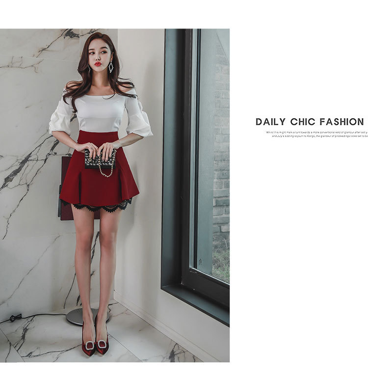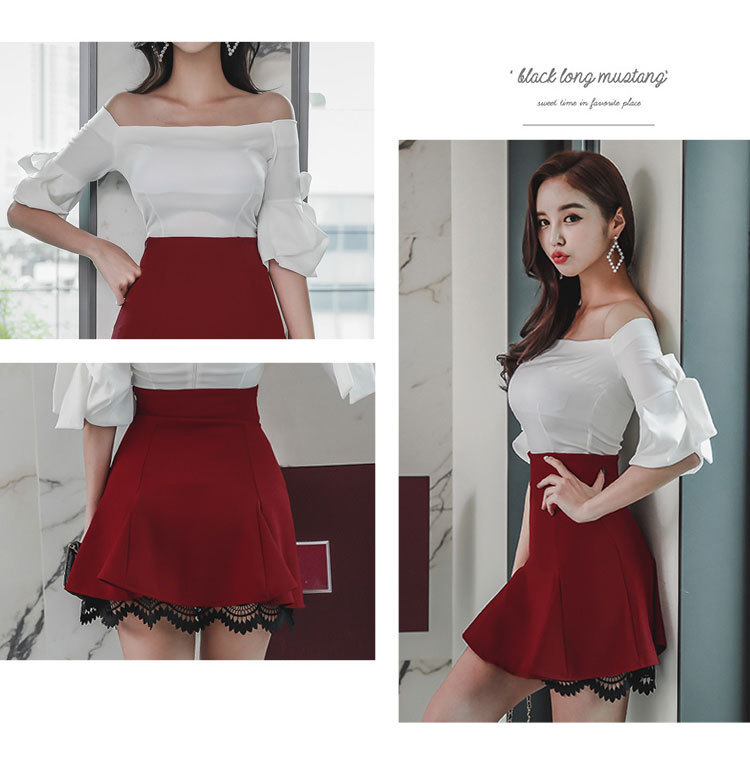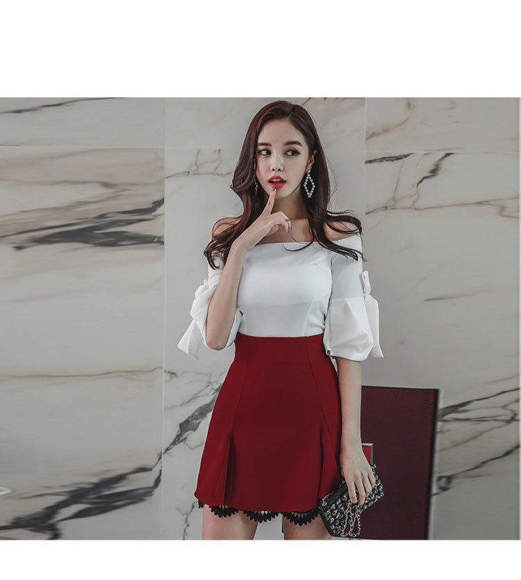 2ピースセット女性スーツOLセット2020ホワイトハーフスリーブスラッシュネックブラウストップスとミニ赤スカート