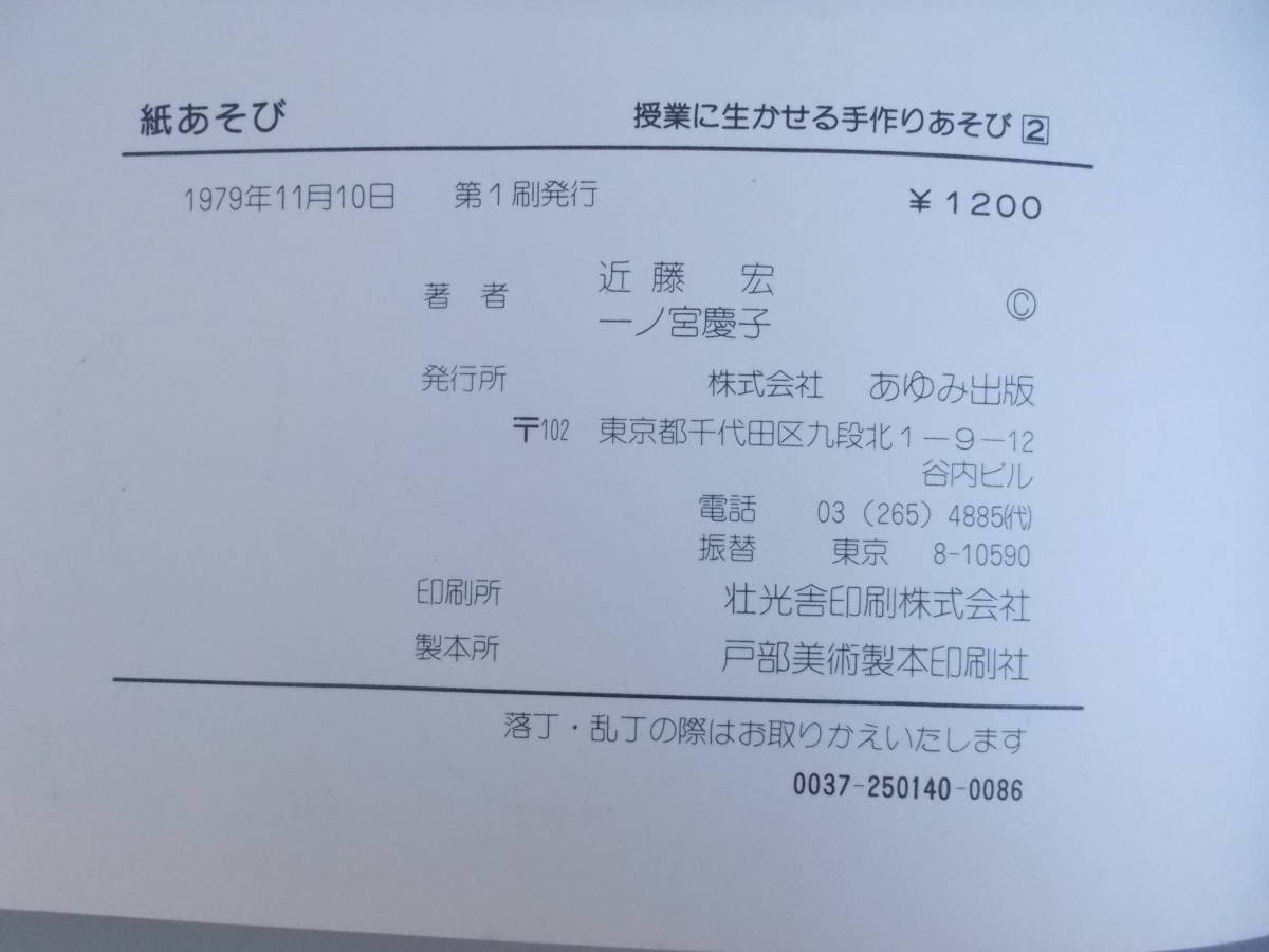授業に生かせる手作りあそび2 紙あそび 近藤宏=他著 あゆみ出版発行 1979年11月10日第1刷発行 中古品