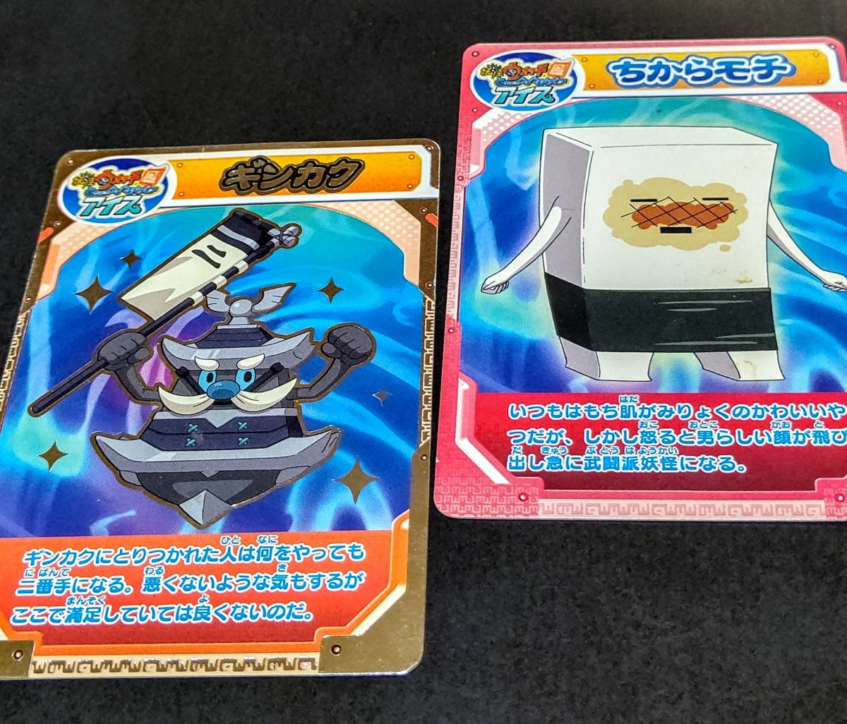 妖怪ウオッチアイス カード。ギンカク、ちからモチ2枚1組セット。(バラ売り応じます)