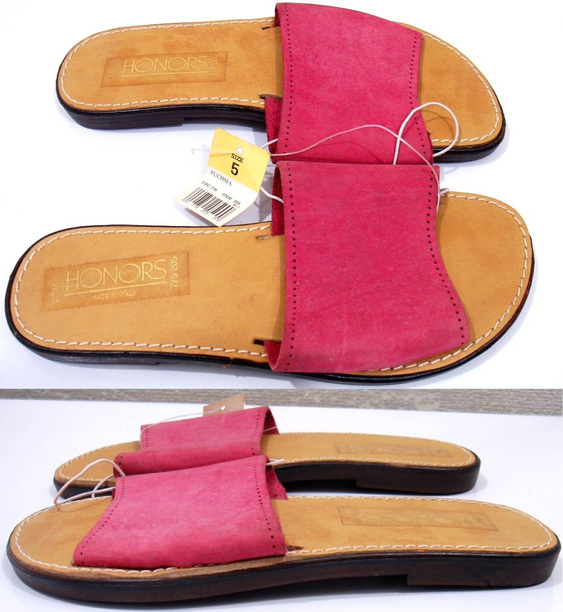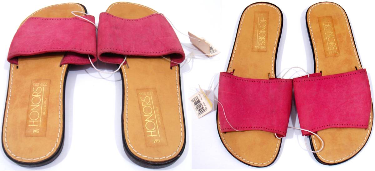 ★★★★即決価格でご落札は送料無料★★★★ 訳あり新品 レザーサンダル HONORS 5M(約22cm~22.5cm) FUCHSIA フラットサンダル MADE IN ITALY フューシャピンク イタリア製 スライドサンダル レザーインソール 本革 レザーフッドヘッド 送料600円~ | ||||||||||||||||||||||||||||||||||||||||||||||||||||||||