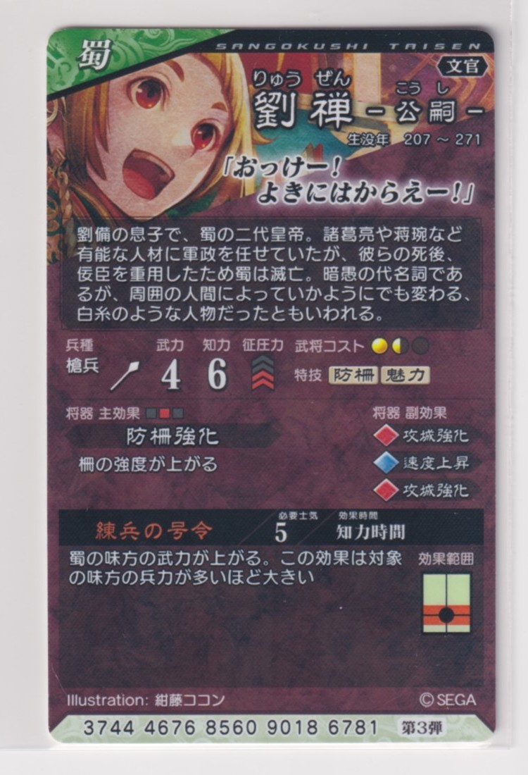 三国志大戦5 蜀 3弾 R 劉禅 練兵の号令 防柵強化 コレクション用