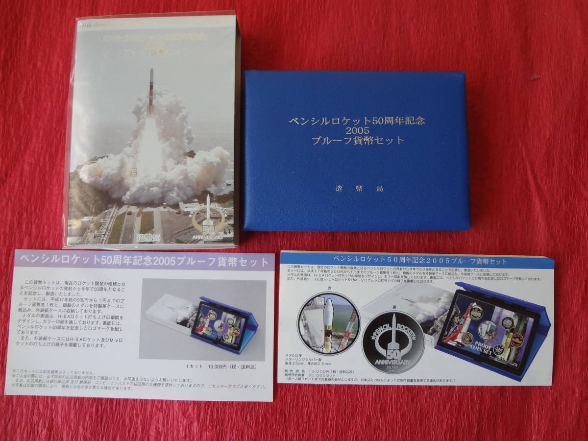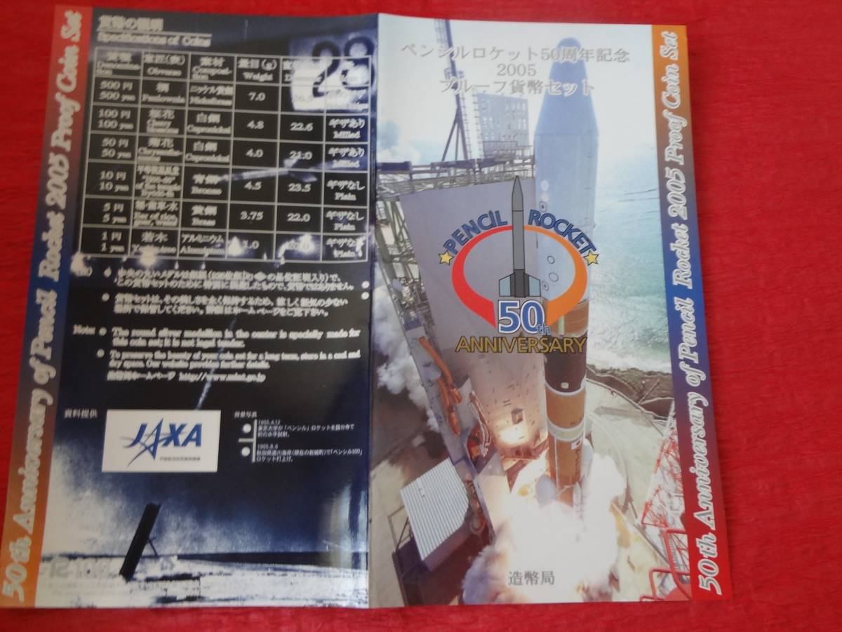 『ペンシルロケット50周年記念2005プルーフ貨幣セット』  造幣局販売案内リーフレット・造幣局商品説明書付き
