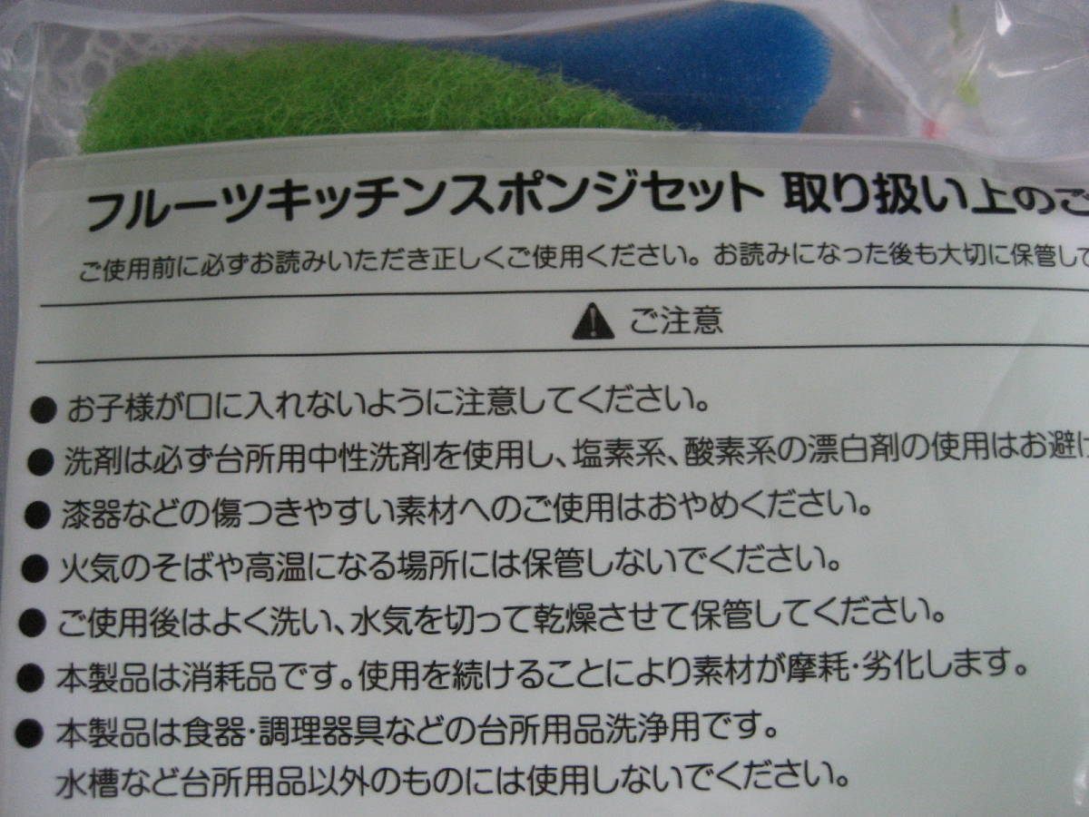 フルーツキッチンスポンジセット 素材 スポンジ:ポリウレタン 不織布:ポリエステル