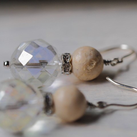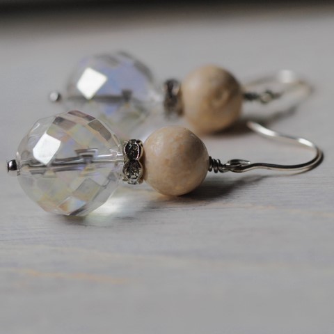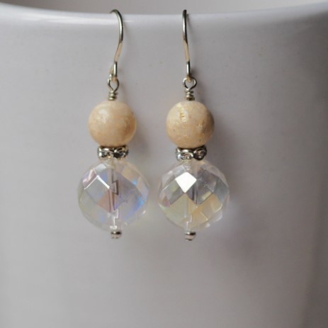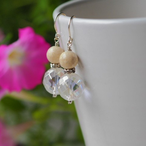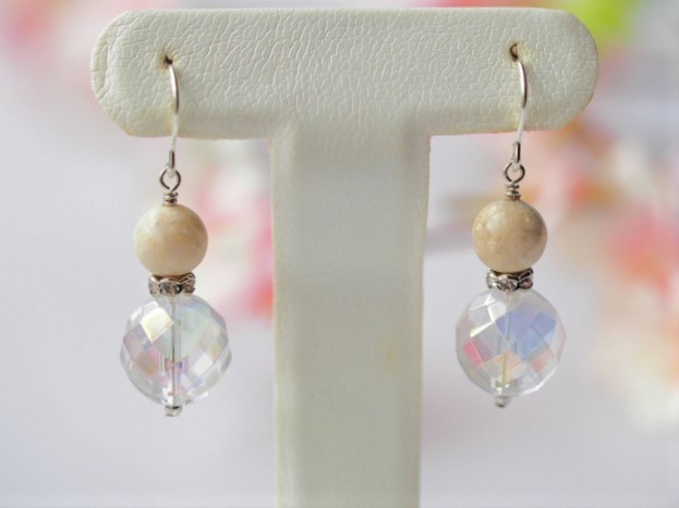 天然ライムストーン 水晶 SV ピアス