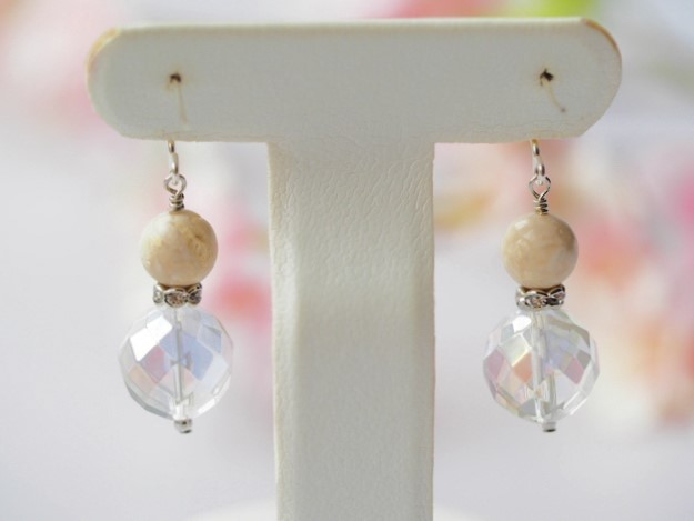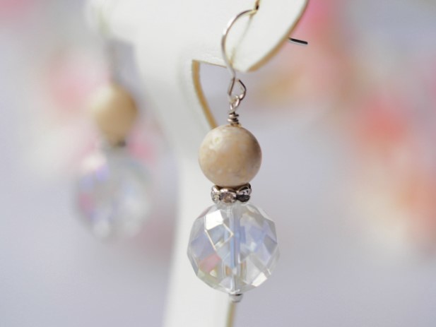 こちらは天然ライムストーン水晶を組合わせたピアス、涼しげで爽やかな色合い、清らかな美しさが素敵です。