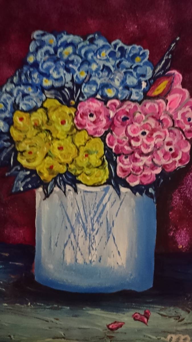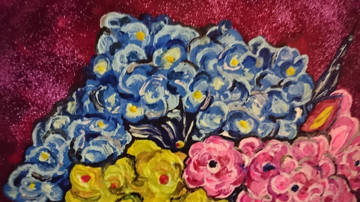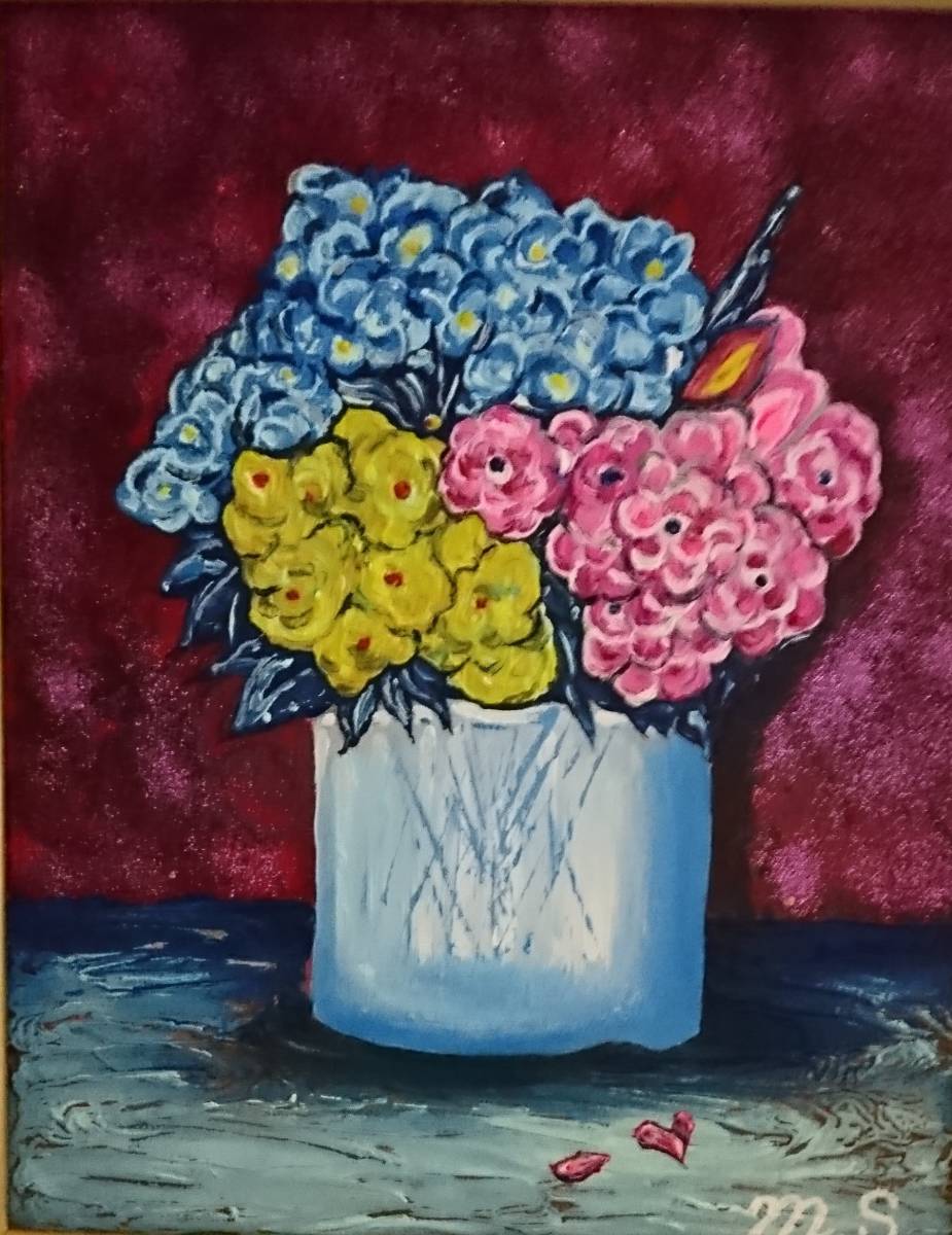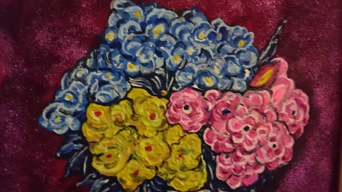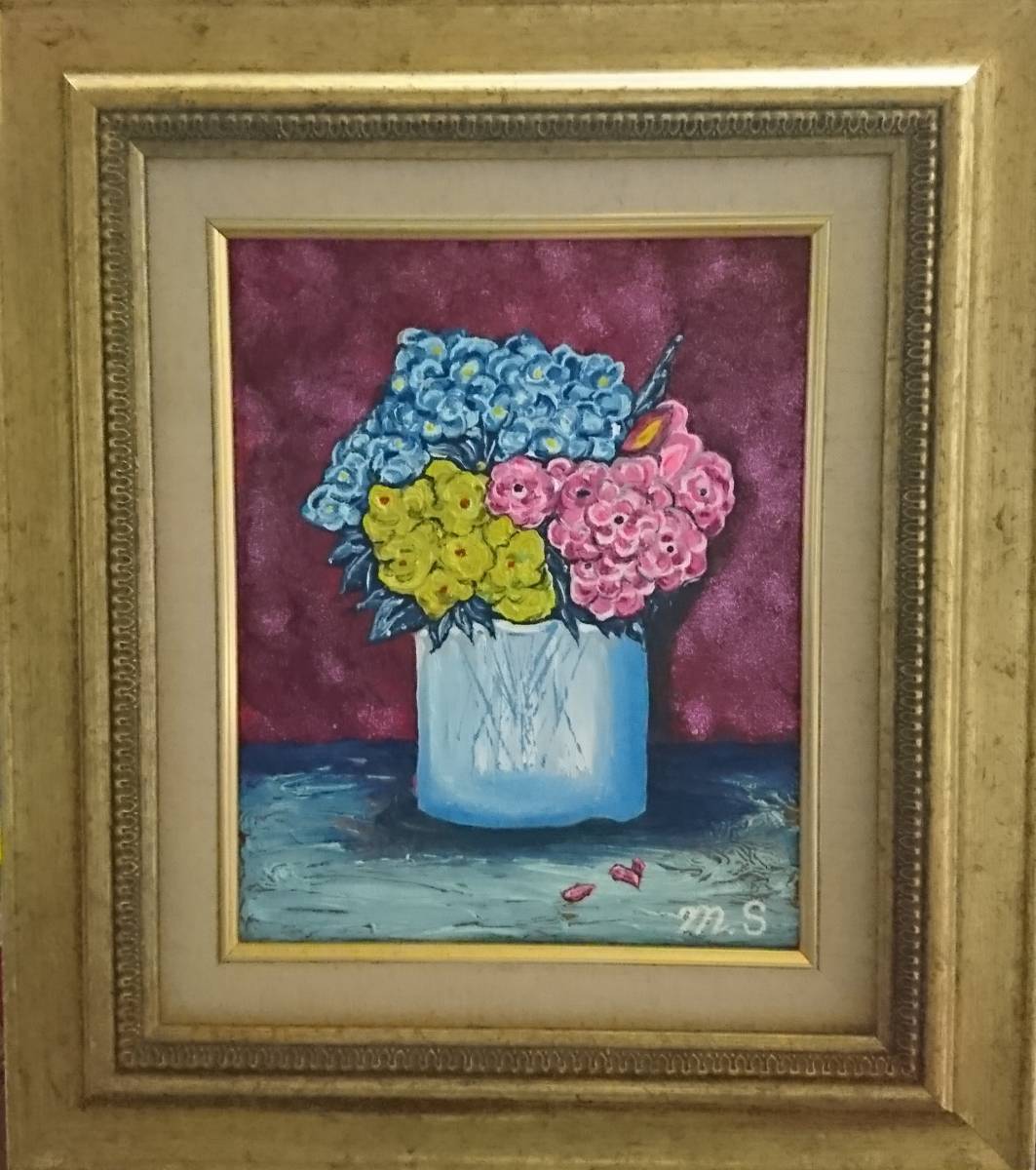 高級油彩絵具に各種のペンティングオイルを加え各色の色彩を鮮やかさ・艶・光沢をバランスよく描き上げた素敵な作品です。