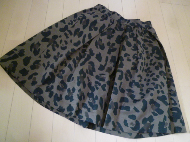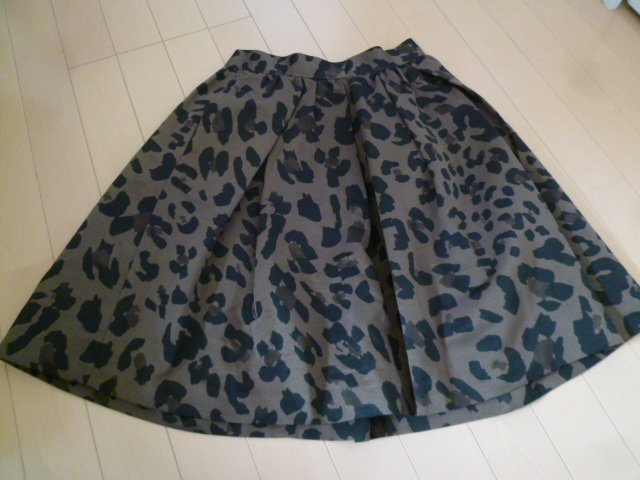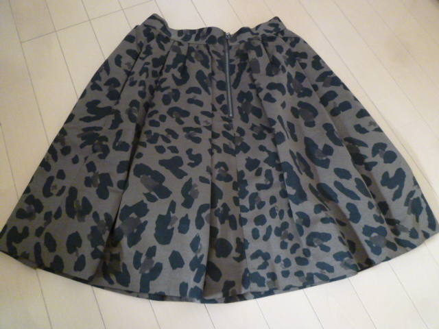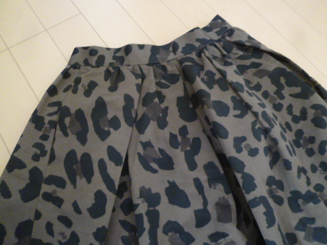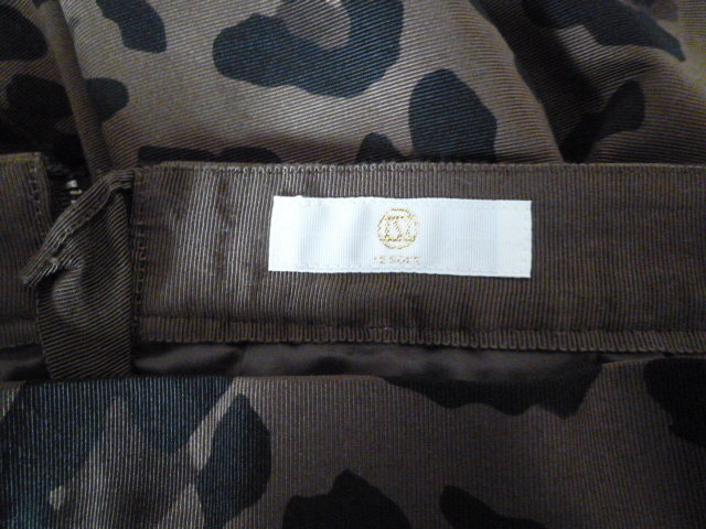 LE SOUK/ルスーク○茶カーキ系ヒョウ柄フレアースカート38/膝丈ブラウン系大人オトナ豹柄○S630