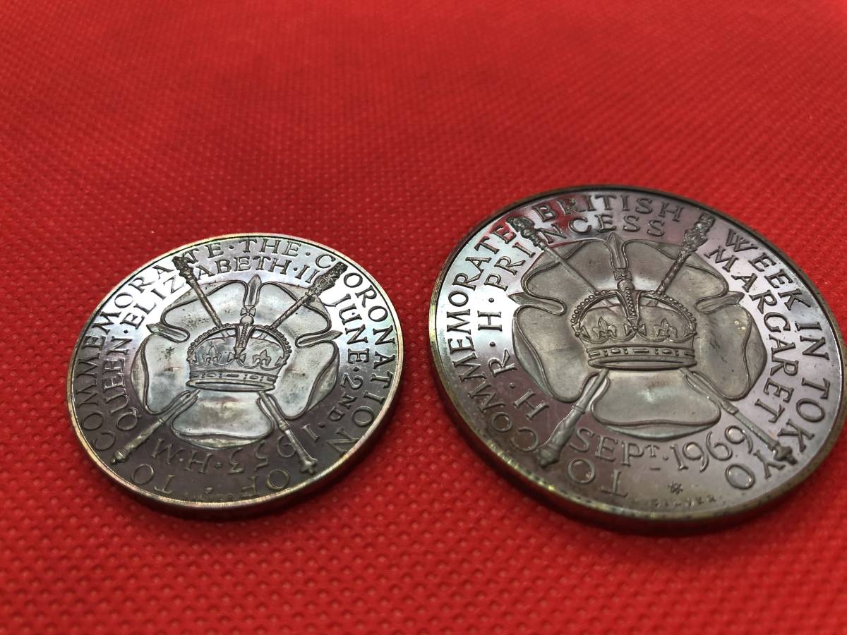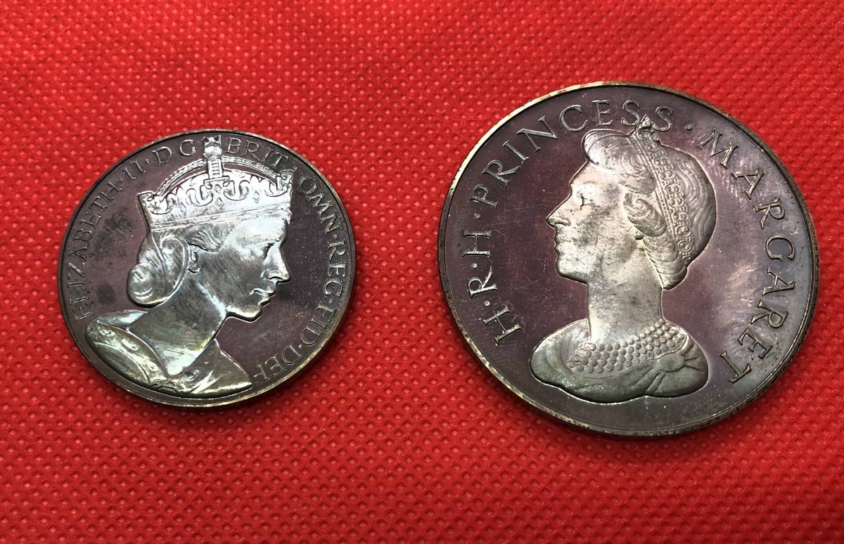 箱付き エリザベス女王 即位メダル マーガレット王女 記念メダル