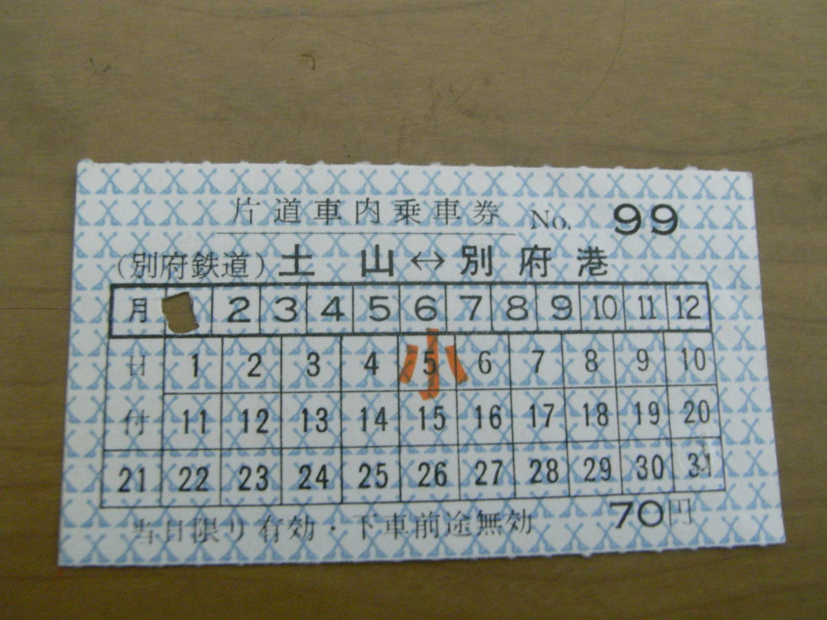 別府鉄道 片道車内乗車券 土山-別府港 小70円 99