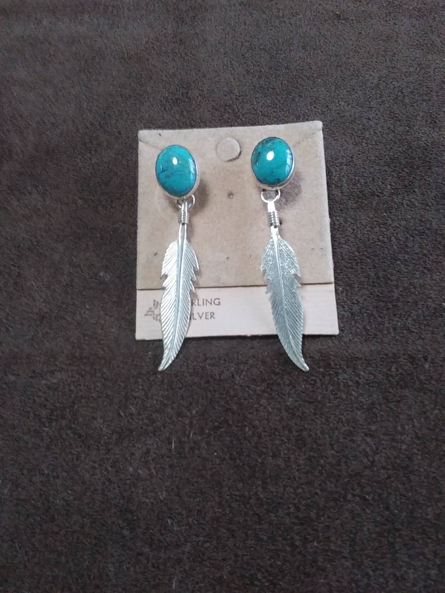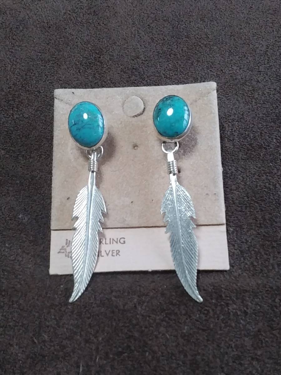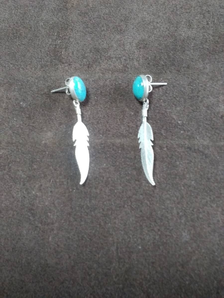 インディアン ジュエリーnavajo ピアス ターコフエザー