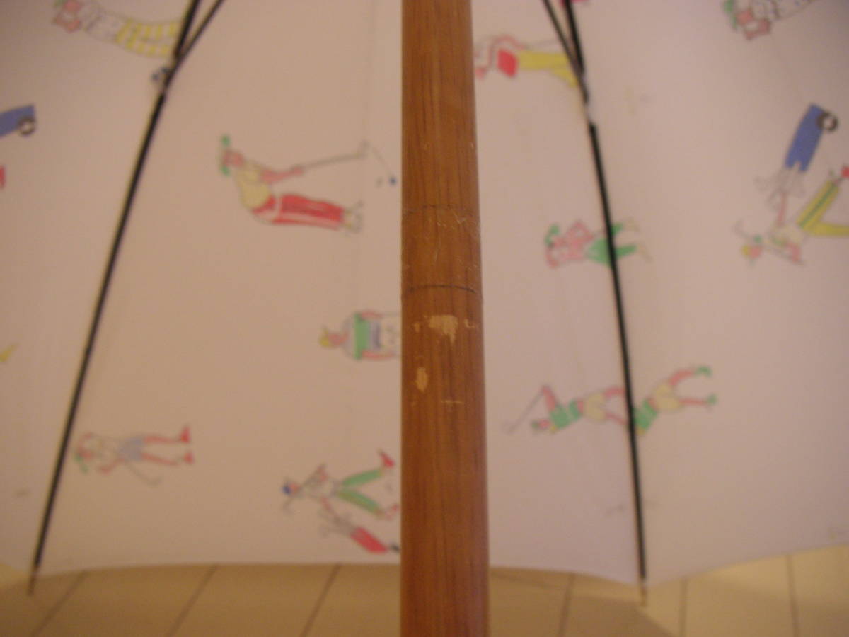 25年程前の物です。 使用はしていませんが、長年、他の傘と一緒に傘立ての中に突っ込んでありましたので、持ち手部分に傷や布の折れ線部分に汚れがあります。(写真参照) 神経質な方は入札をお控え下さい。 ノークレーム、ノーリターンでお願い致します。 |
