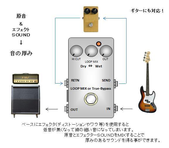 IN ⇒ { (LOOP MIX CIRCUIT / FX ) / True-Bypass } ⇒ OUT |